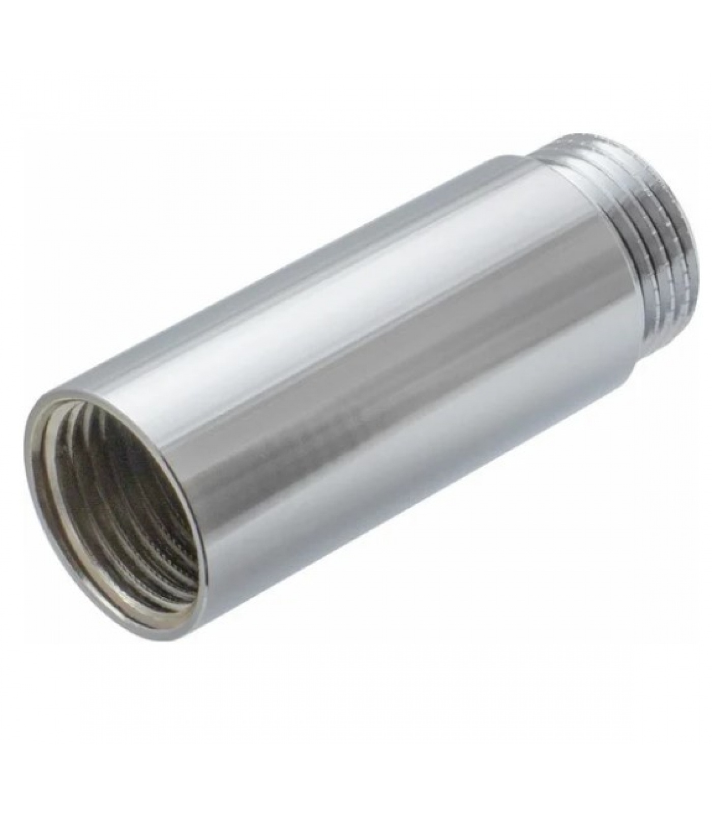 Удлинитель – фитинг, используемый в качестве соединительного элемента в трубах. Элемент представляет собой цилиндр с резьбой. С одной стороны она нарезана на внешней части корпуса, с другой – на внутренней. Внутренний диаметр изделия выполнен в виде многогранника для удобного и быстрого монтажа. Материал конструкции - хромированная латунь, которая отличается своими антикоррозийными и эксплуатационными свойствами.
