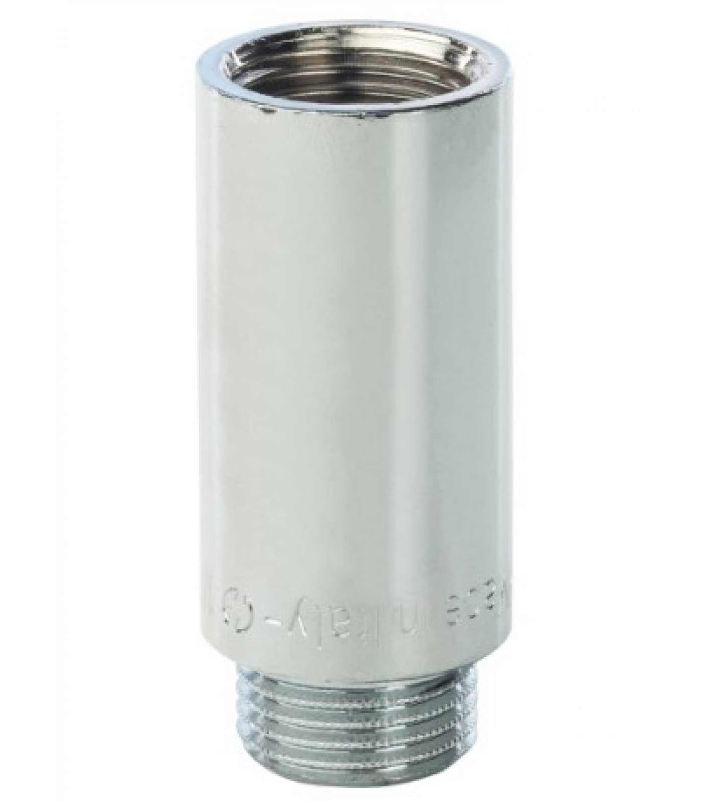 Удлинитель – фитинг, используемый в качестве соединительного элемента в трубах. Элемент представляет собой цилиндр с укороченной резьбой. С одной стороны она нарезана на внешней части корпуса, с другой – на внутренней. Внутренний диаметр изделия выполнен в виде многогранника для удобного и быстрого монтажа. Материал конструкции - хромированная латунь, которая отличается своими антикоррозийными и эксплуатационными свойствами.