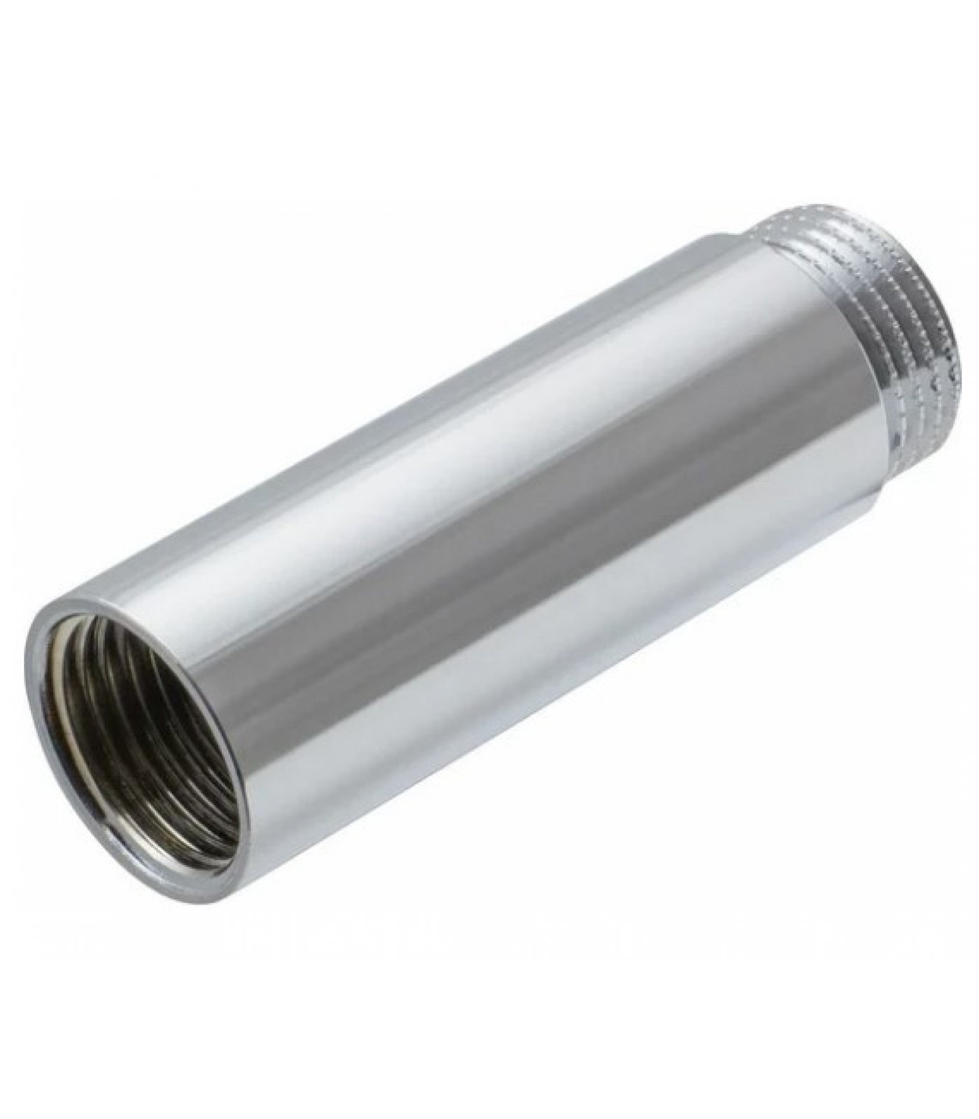 Удлинитель – фитинг, используемый в качестве соединительного элемента в трубах. Элемент представляет собой цилиндр с резьбой. С одной стороны она нарезана на внешней части корпуса, с другой – на внутренней. Внутренний диаметр изделия выполнен в виде многогранника для удобного и быстрого монтажа. Материал конструкции - хромированная латунь, которая отличается своими антикоррозийными и эксплуатационными свойствами.
