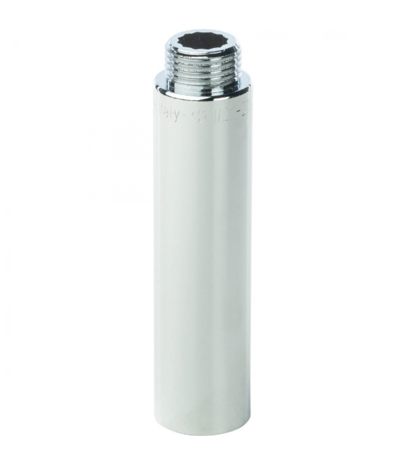 Удлинитель – фитинг, используемый в качестве соединительного элемента в трубах. Элемент представляет собой цилиндр с укороченной резьбой. С одной стороны она нарезана на внешней части корпуса, с другой – на внутренней. Внутренний диаметр изделия выполнен в виде многогранника для удобного и быстрого монтажа. Материал конструкции - хромированная латунь, которая отличается своими антикоррозийными и эксплуатационными свойствами.