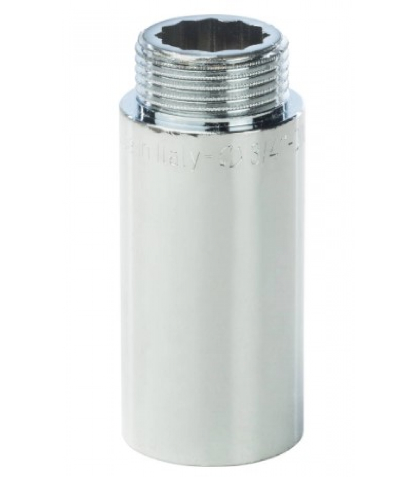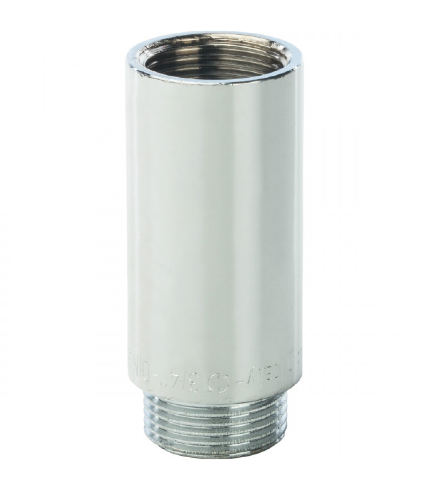 Удлинитель – фитинг, используемый в качестве соединительного элемента в трубах. Элемент представляет собой цилиндр с укороченной резьбой. С одной стороны она нарезана на внешней части корпуса, с другой – на внутренней. Внутренний диаметр изделия выполнен в виде многогранника для удобного и быстрого монтажа. Материал конструкции - хромированная латунь, которая отличается своими антикоррозийными и эксплуатационными свойствами.