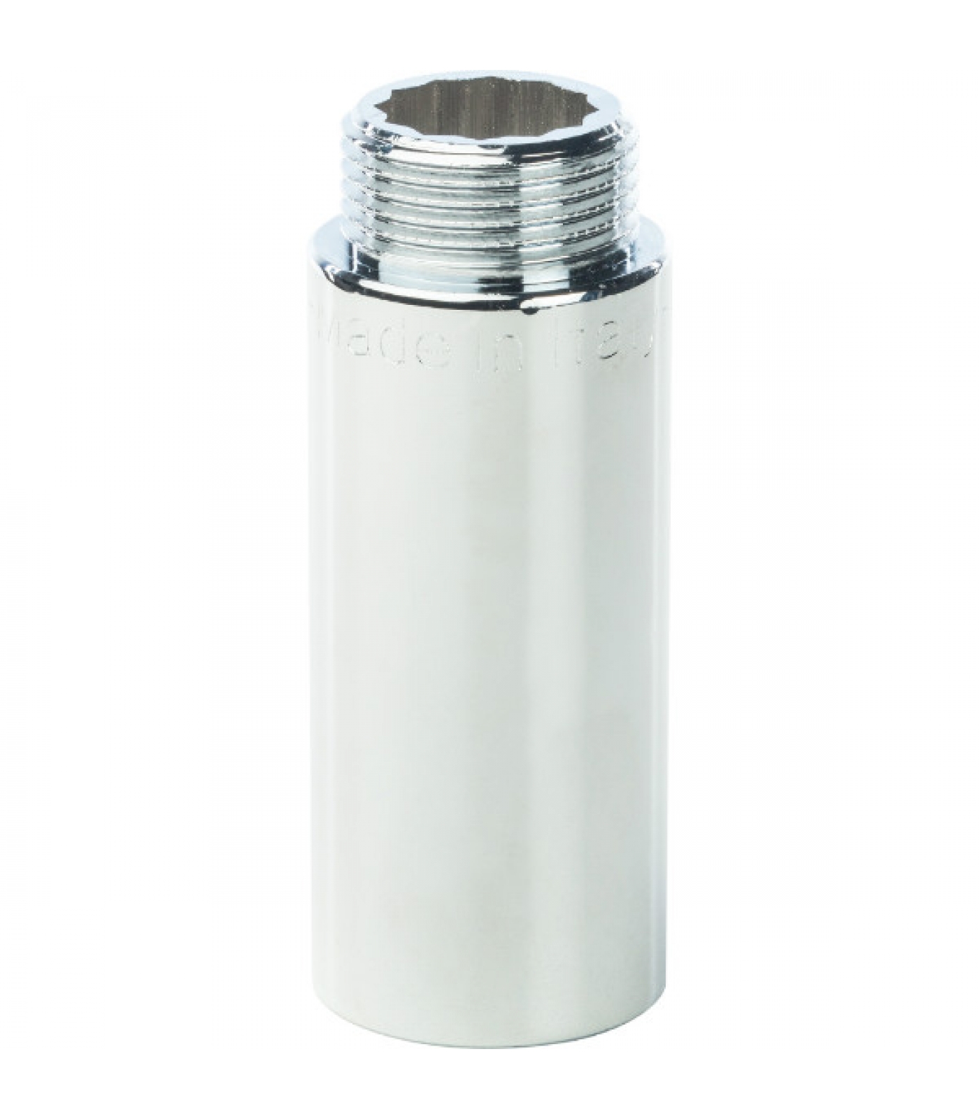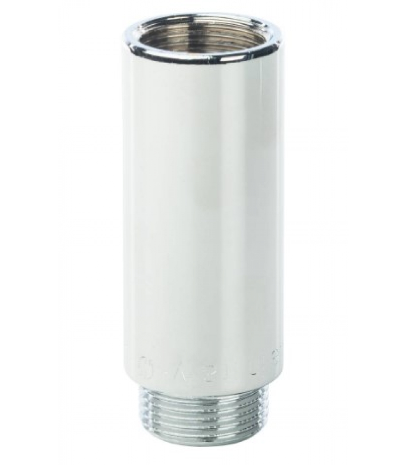 Удлинитель – фитинг, используемый в качестве соединительного элемента в трубах. Элемент представляет собой цилиндр с укороченной резьбой. С одной стороны она нарезана на внешней части корпуса, с другой – на внутренней. Внутренний диаметр изделия выполнен в виде многогранника для удобного и быстрого монтажа. Материал конструкции - хромированная латунь, которая отличается своими антикоррозийными и эксплуатационными свойствами.