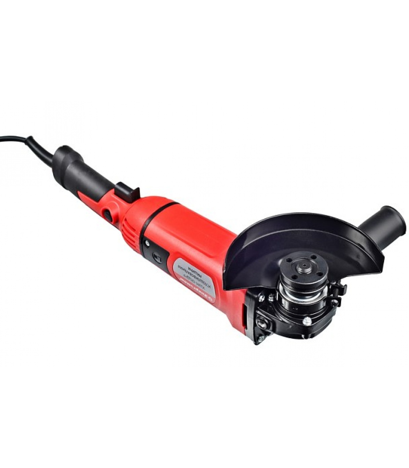 УШМ-125ДРР – универсальная болгарка (УШМ) бытового назначения под рабочий диаметр диска 125 мм. Имеет компоновку с длинной рукоятью и рассчитана под хват двумя руками. Основное преимущество данной компоновки – лучший контроль и удобство использования инструмента при зачистных и шлифовочных операциях. Работу в местах с трудным доступом призван облегчить низкопрофильный корпус редуктора клиновидной формы. Особенность модели – функция электронной регулировки оборотов (4000 – 10500 об / мин), благодаря которой достигается оптимальный подбор частоты вращения в зависимости от типа используемой оснастки и обрабатываемого материала. Для обеспечения высокого ресурса инструмента особое внимание уделено наиболее нагруженным элементам конструкции: электромотор покрыт несколькими изоляционными слоями термостойкого лака и имеет дополнительную защиту от пыли и абразивных частиц, благодаря закалке, повышенной прочностью обладают шестерни редуктора. Кроме того, применение шестерен с конической формой зуба позволило снизить уровень шума при работе. Инструмент прост в обслуживании и эксплуатации. Предусмотрена функция быстрого доступа к щеткам, позволяющая их замену без разбора элементов корпуса. Для удобства пользователя модель снабжена быстросъемным защитным кожухом, который надежно фиксируется при помощи специального зажимного рычага – это дает возможность при необходимости быстро изменять положение кожуха, не прибегая к помощи вспомогательного инструмента, а также удобной патентованной рукоятью со специальным твердосплавным карандашом для нанесения разметки на поверхности любой сложности, включая ржавые, влажные и маслянистые.