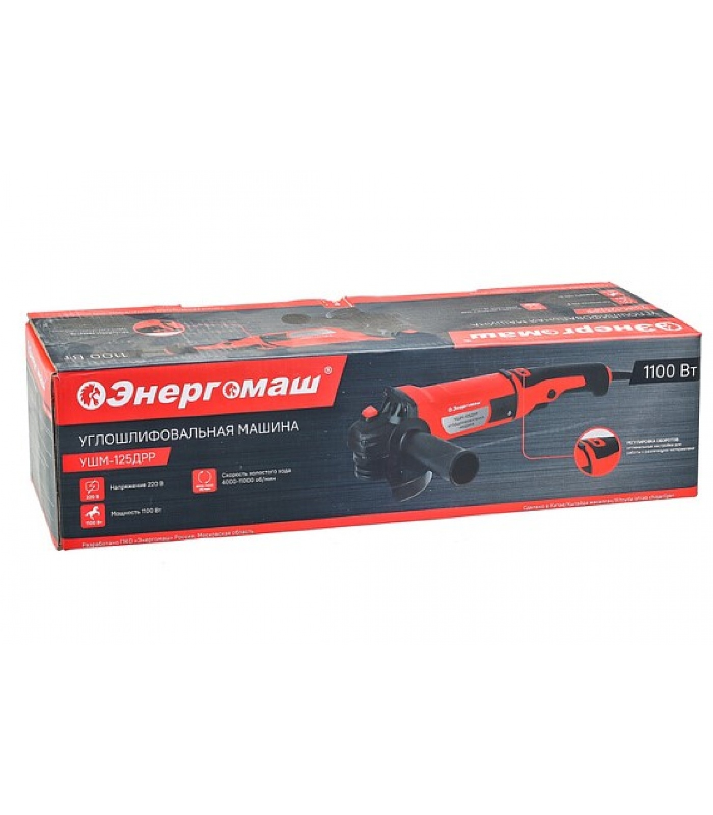 Углошлифовальная машина Энергомаш 125 мм, 1100 Вт, 4000-10500 об/мин, удлиненная рукоять