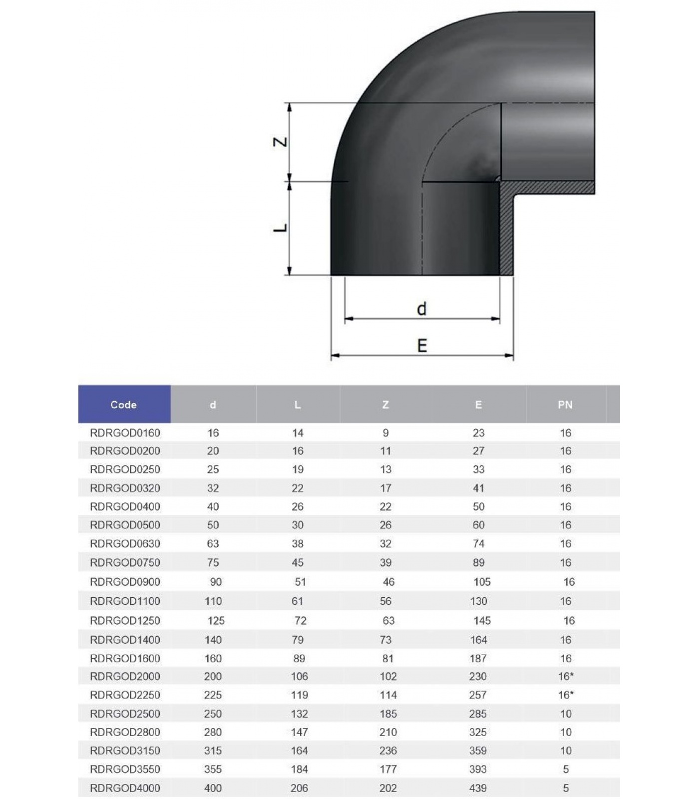 Угол клеевой 90° d125 PN16 Effast, Италия