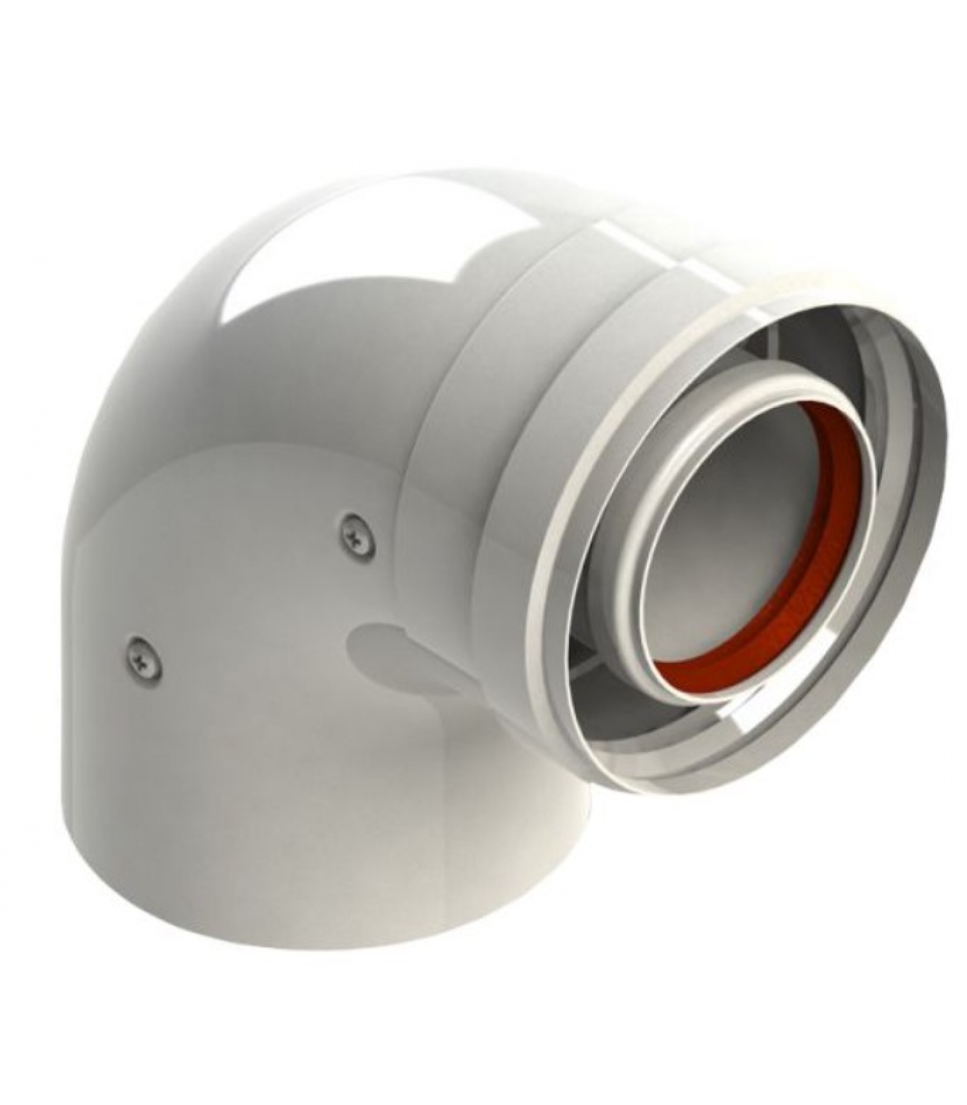 Универсальное промежуточное колено Ø60/100 90⁰- элемент удлинения системы. Подходит для всех видов коаксиальных труб котлов с закрытой камерой сгорания.