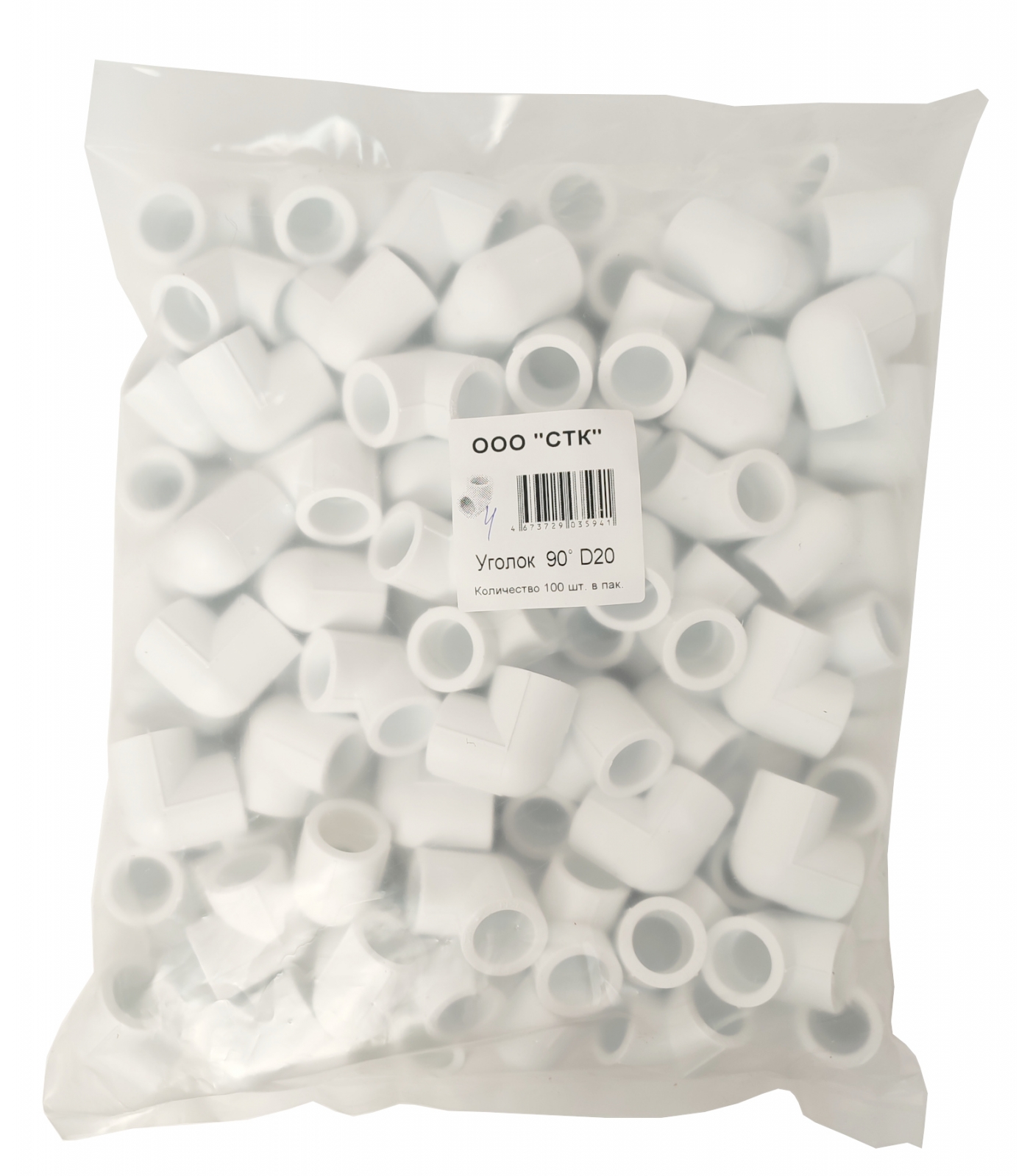 Угольник 20 мм 90° СТК PP-R белый, пакет 100 шт