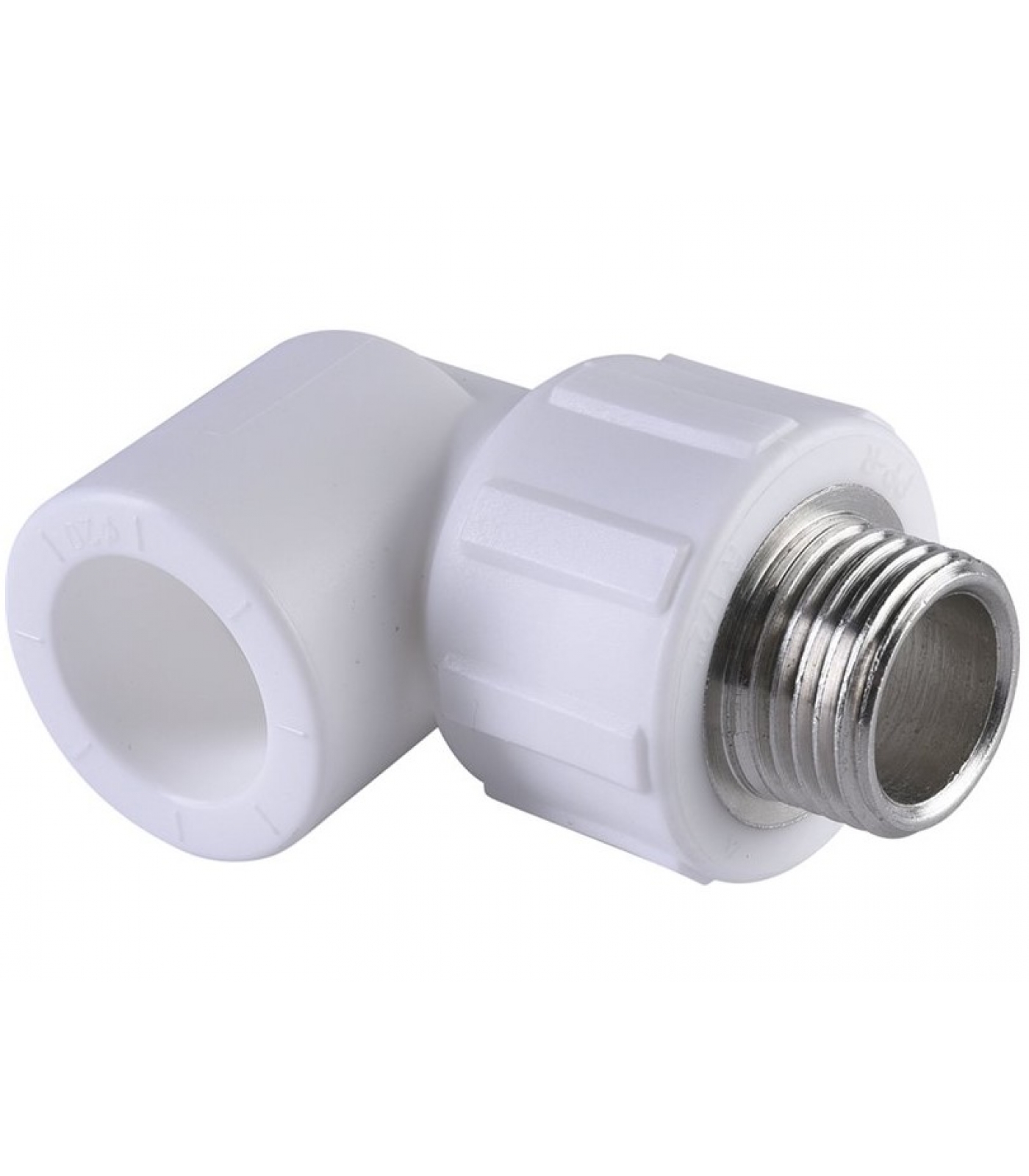 Угольник 90º комбинированный Политэк для полипропиленовых труб (белый) PPRC диаметром 20 мм и наружной резьбой 1/2"