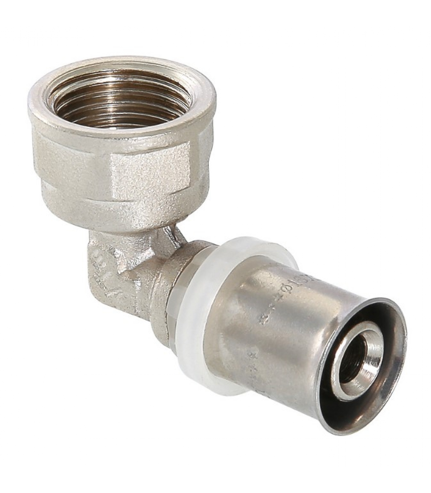 (VTm.252.N) Угловой пресс-фитинг для подсоединения к металлопластиковым трубам (металлополимерные трубы) или трубам из сшитого полиэтилена элемента системы с резьбовым подключением. Резьба фитинга – внутренняя трубная по ГОСТу 6357.