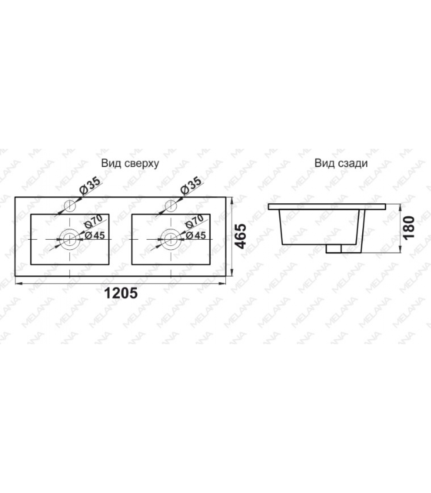 Раковина Melana MLN-9120ED, двойная, накладная на столешницу