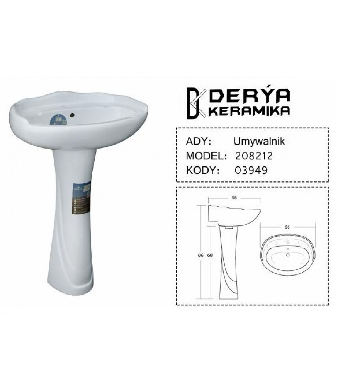 Пьедестал для умывальника DERYAKERAMIKA DK-208212 – обеспечивает надежную и прочную поддержку.