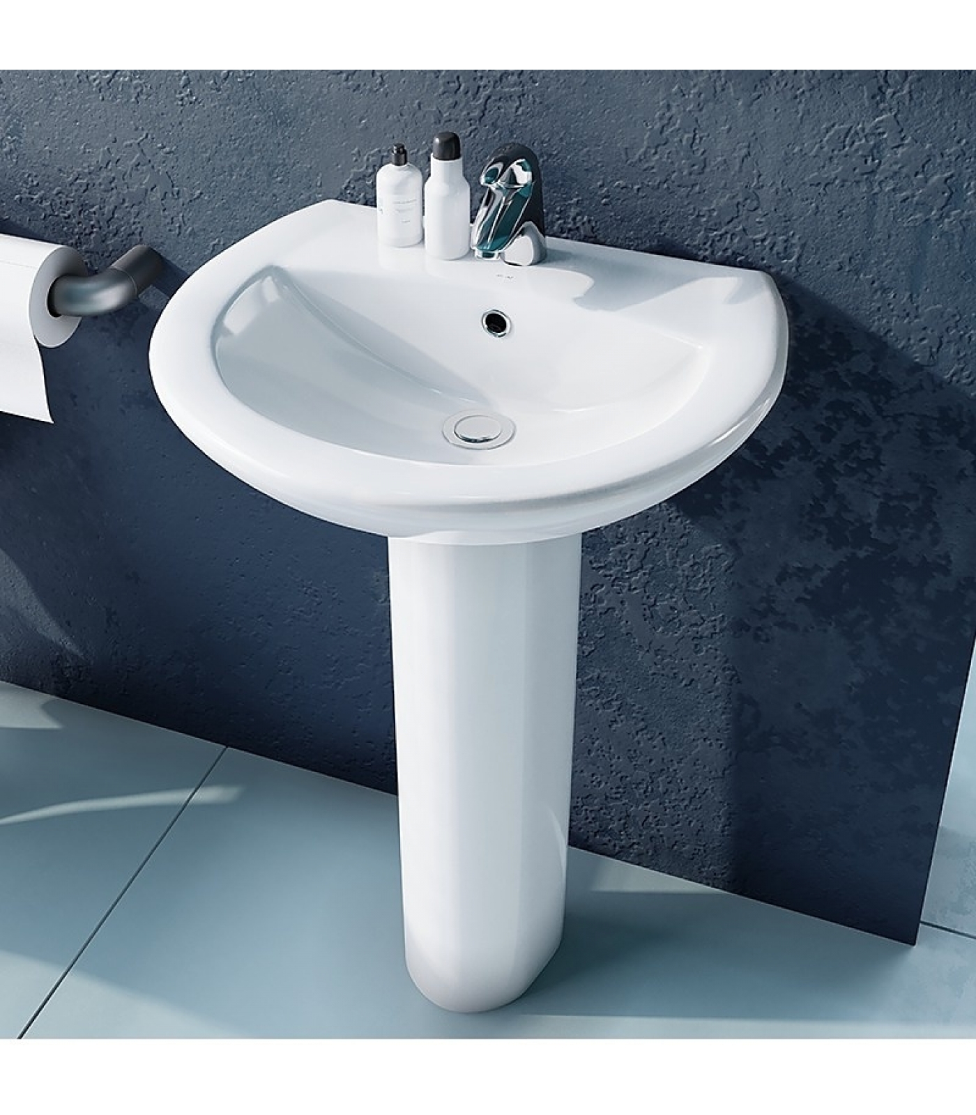 В комплект поставки входят крепления для установки и кольцо перелива. Смеситель и пьедестал в комплект поставки не входит и приобретается отдельно.