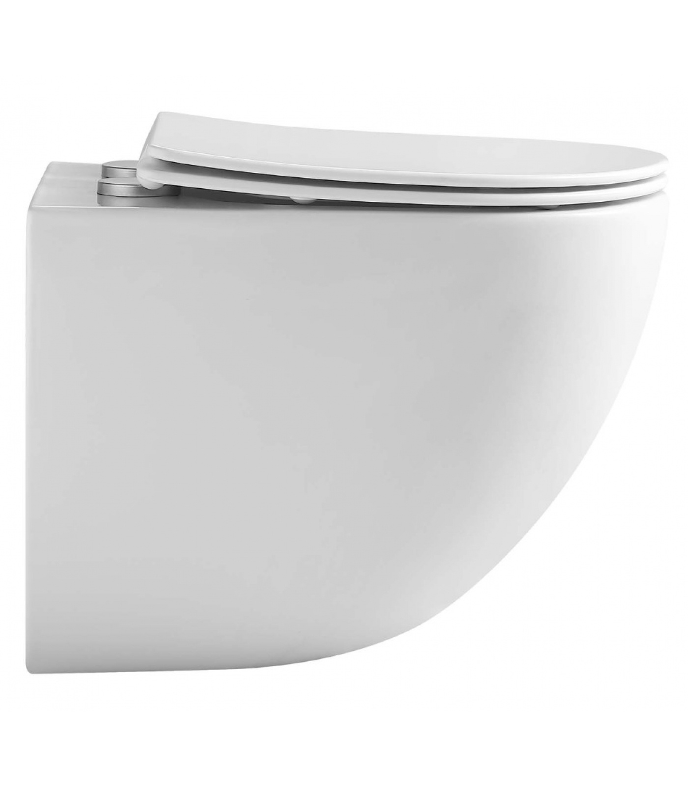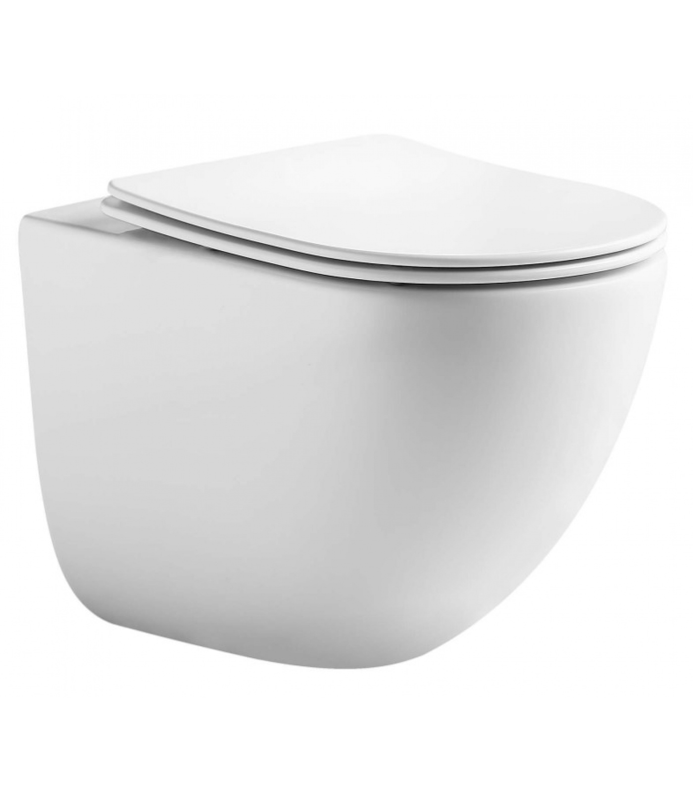 Унитаз подвесной безободковый, система смыва торнадо, 505*360*370 мм, горизонтальный выпуск, тонкое сиденье с механизмом плавного закрывания, крепеж