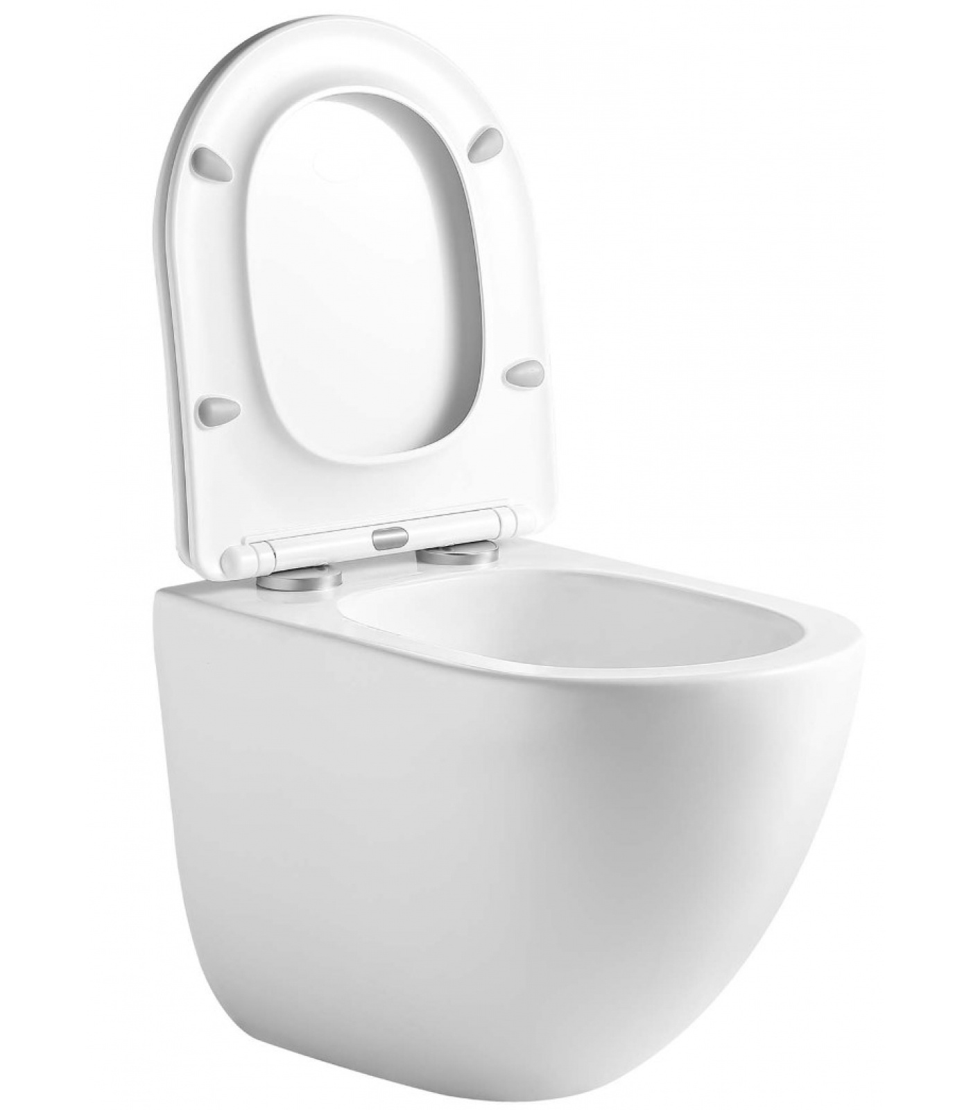 Безободковая конструкция чаши обеспечивает гигиеничность, отсутствие скрытых участков и простоту в уходе. Этот современный унитаз оснащен ультратонким легкосъемным сиденьем из дюропласта, что обеспечивает простоту в уходе и гигиеничность. Система плавного опускания сиденья предотвращает резкие звуки и обеспечивает комфортное использование.