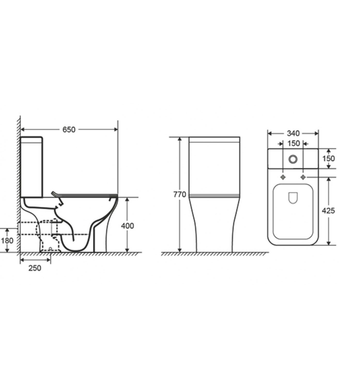 Унитаз напольный, безободковый, 650x340x770, крышка-сиденье дюропласт soft-close