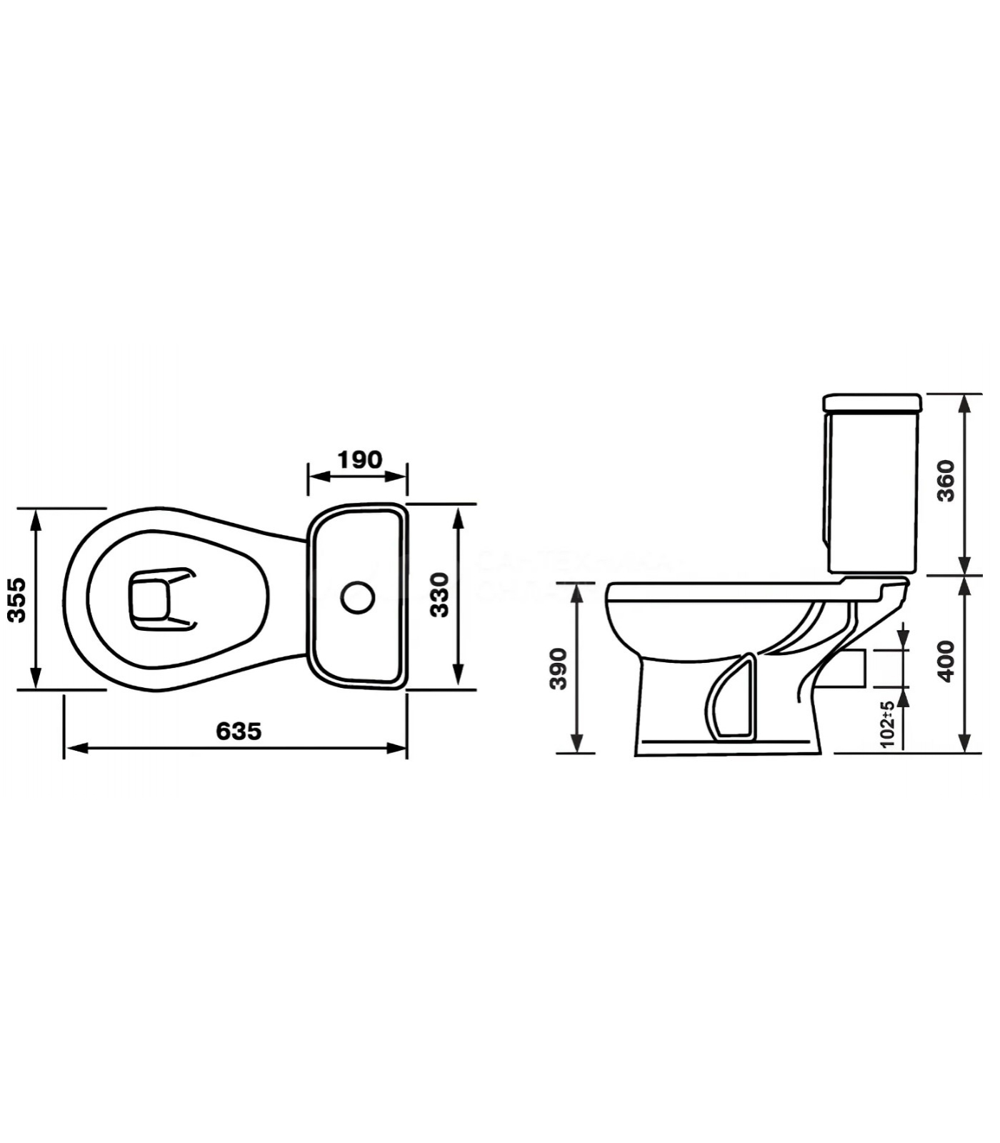 Унитаз-компакт Оскольская керамика Дора, белый, 1 режим, сиденье, горизонтальный выпуск, гофра