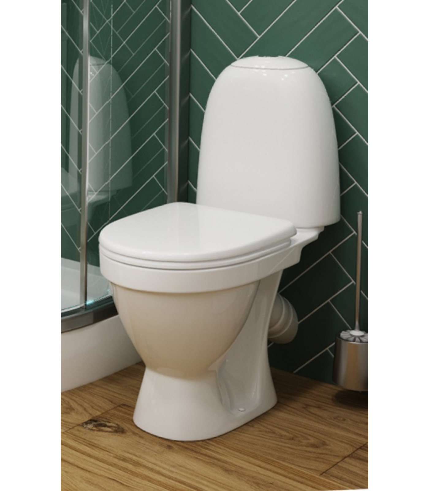 Корпус из 100% фарфора - обладает высокой плотностью, что в свою очередь обеспечивает высокую прочность и теплоустойчивость. Фарфор не впитывает воду, загрязнения и запахи, поэтому поверхность остаётся белой и легко чистится. С годами материал не крошится и не трескается под воздействием влаги. Бачок полностью наполняется за 35 секунд, а при слабом давлении в трубах (0,05 МПа) - не дольше 150 секунд. Быстрый смыв, со скоростью 1,8 литров в секунду, гарантирует чистоту унитаза. Поплавок внутри бачка фиксируется футляром, от дна до кнопки, поэтому он не смещается и механизм слива не заедает.