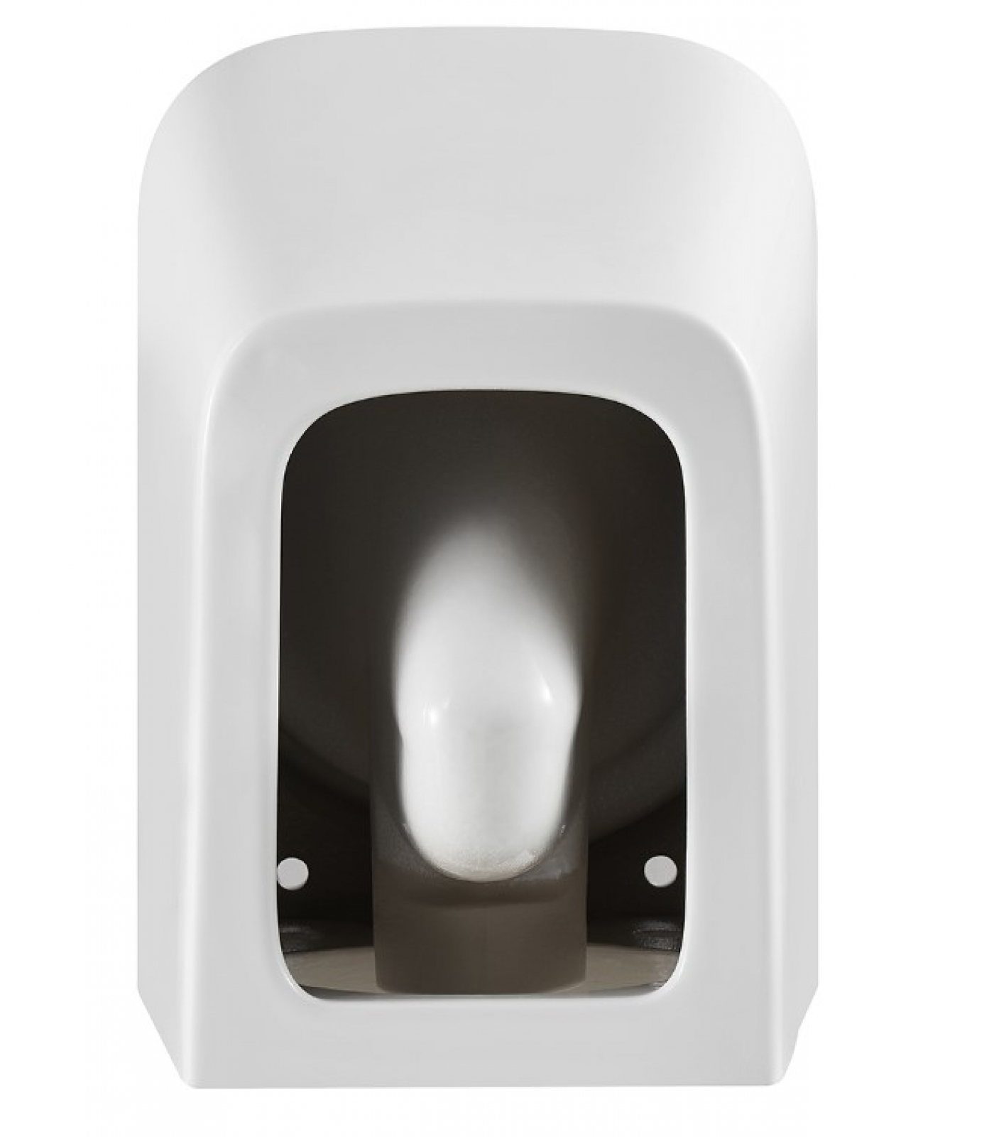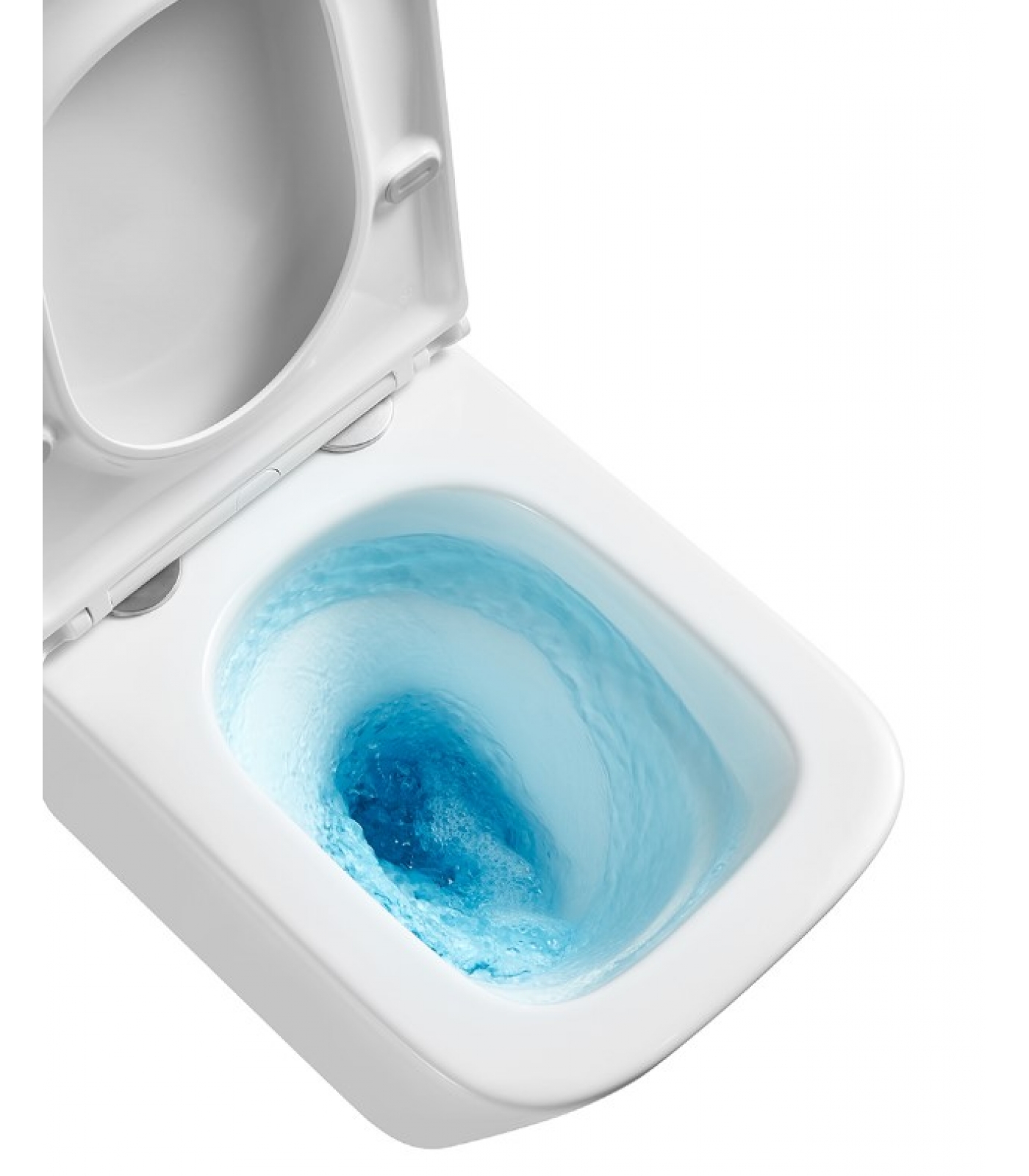 Безободковая чаша облегчает уход, предотвращает скопление бактерий и загрязнений, которые обычно накапливаются в труднодоступных местах традиционной ободковой чаши.