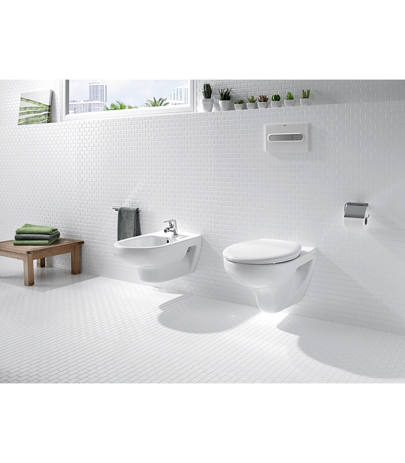 Унитаз Roca Mateo демонстрирует сочетание стильного испанского дизайна и повышенной надежности. Для производства оборудования использован сантехнический фаянс с износостойким и гигиеничным покрытием. Поверхность неприхотлива в уходе и снижает вероятность скопления грязи. Подвесная конструкция не стесняет движение ног и значительно облегчает мытье полов. Сидение изготовлено из прочного и гигиеничного дюропласта. Каскадный слив позволит быстро, сплошным, мощным потоком воды очистить чашу.