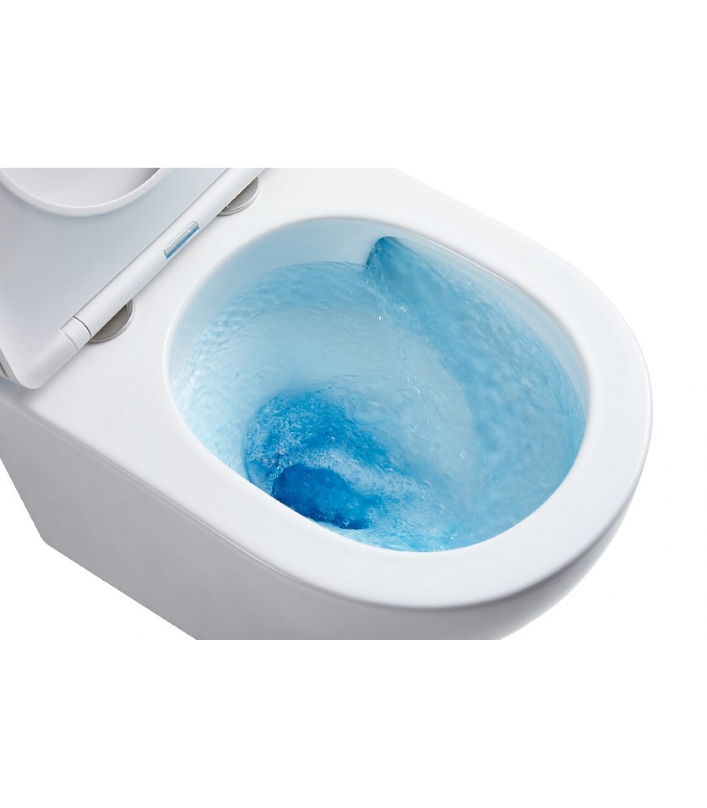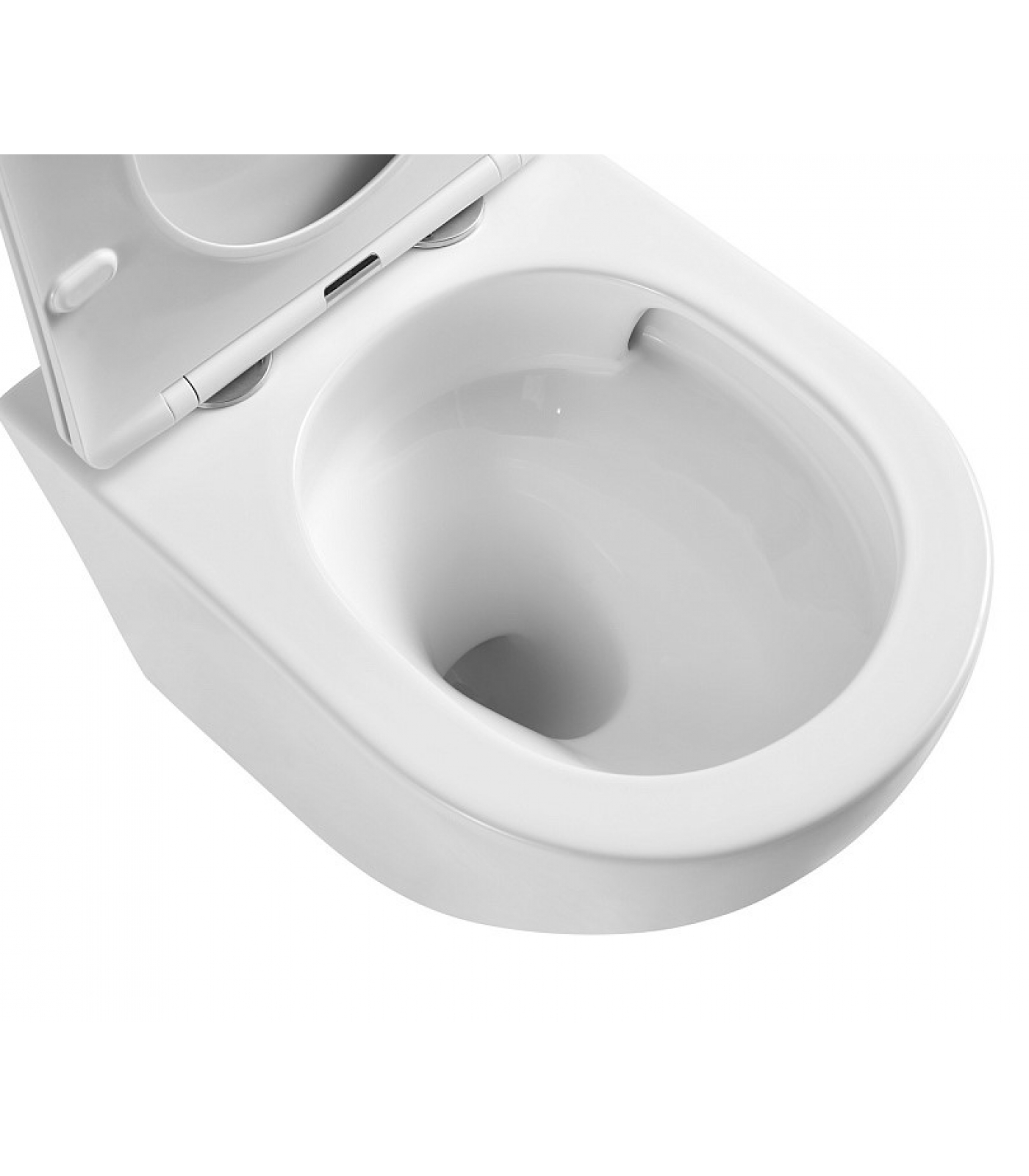 Благодаря подвесной конструкции унитаз не занимает много места в помещении, а свободное пространство под чашей делает уборку в ванной комнате гораздо легче. Безободковое исполнение позволяет предотвратить скопление бактерий и грязи на внутренней поверхности чаши и обеспечивает ее чистоту и гигиеничность использования. Изделие выполнено из санфаянса, который обладает повышенной прочностью и устойчивостью к негативным внешним факторам, а так же долгое время сохраняет идеальную белизну. Унитаз имеет уже установленное сиденье из практичного дюропласта, которое оснащено функцией микролифта, это обеспечивает его плавное и бесшумное движение. Быстросъемный механизм сиденья гарантирует максимально комфортную, легкую и быструю чистку унитаза.