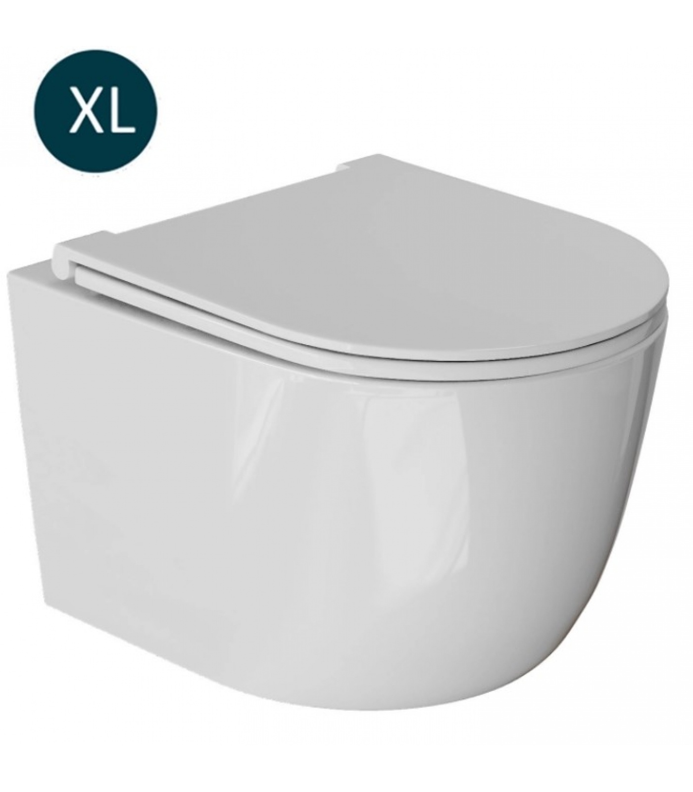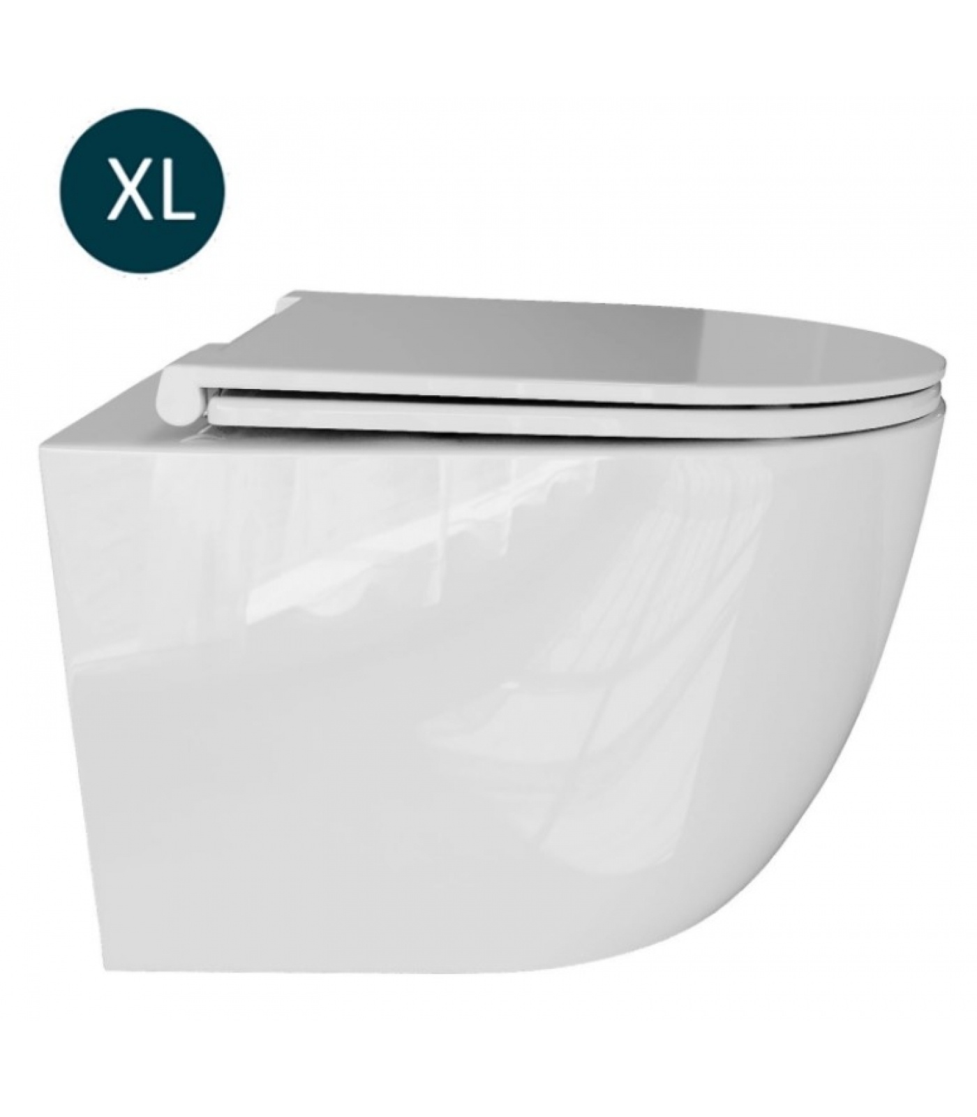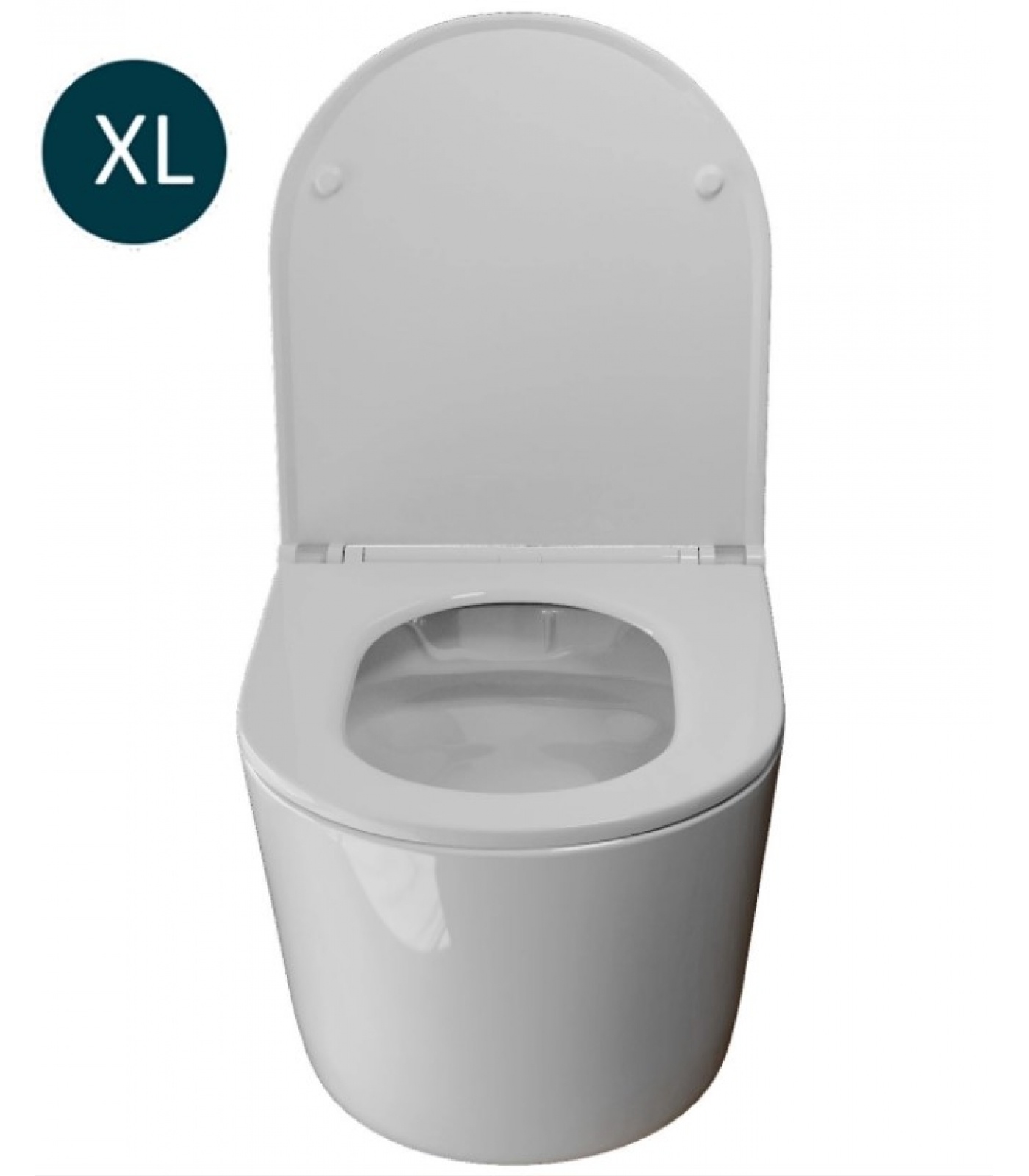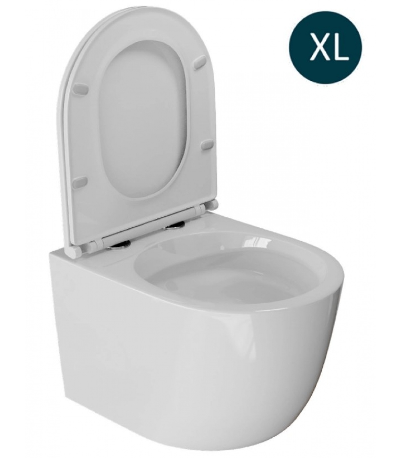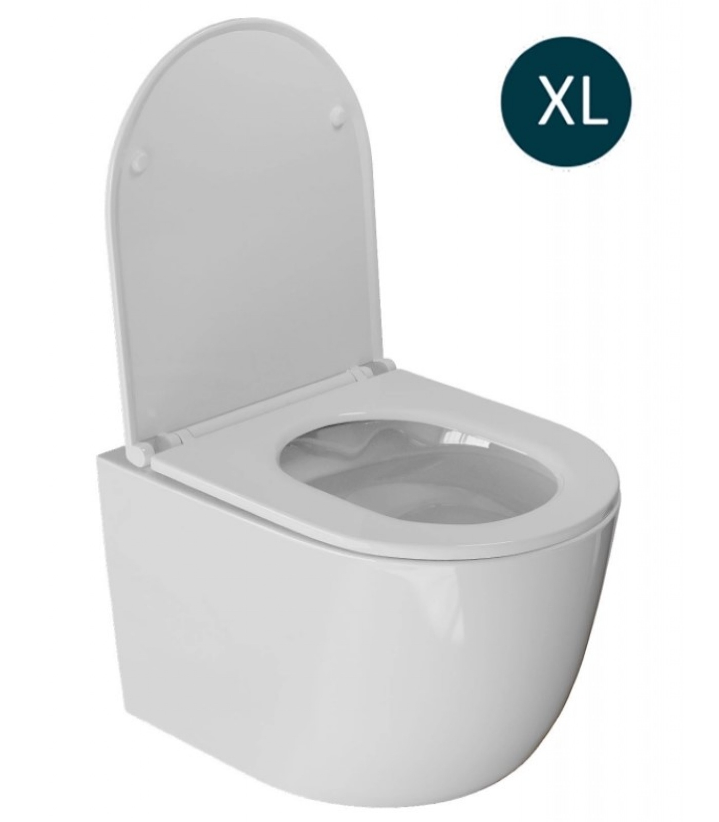 Унитаз XL подвесной безободковый WAVE LARA сиденье дюропласт, микролифт, белый глянец