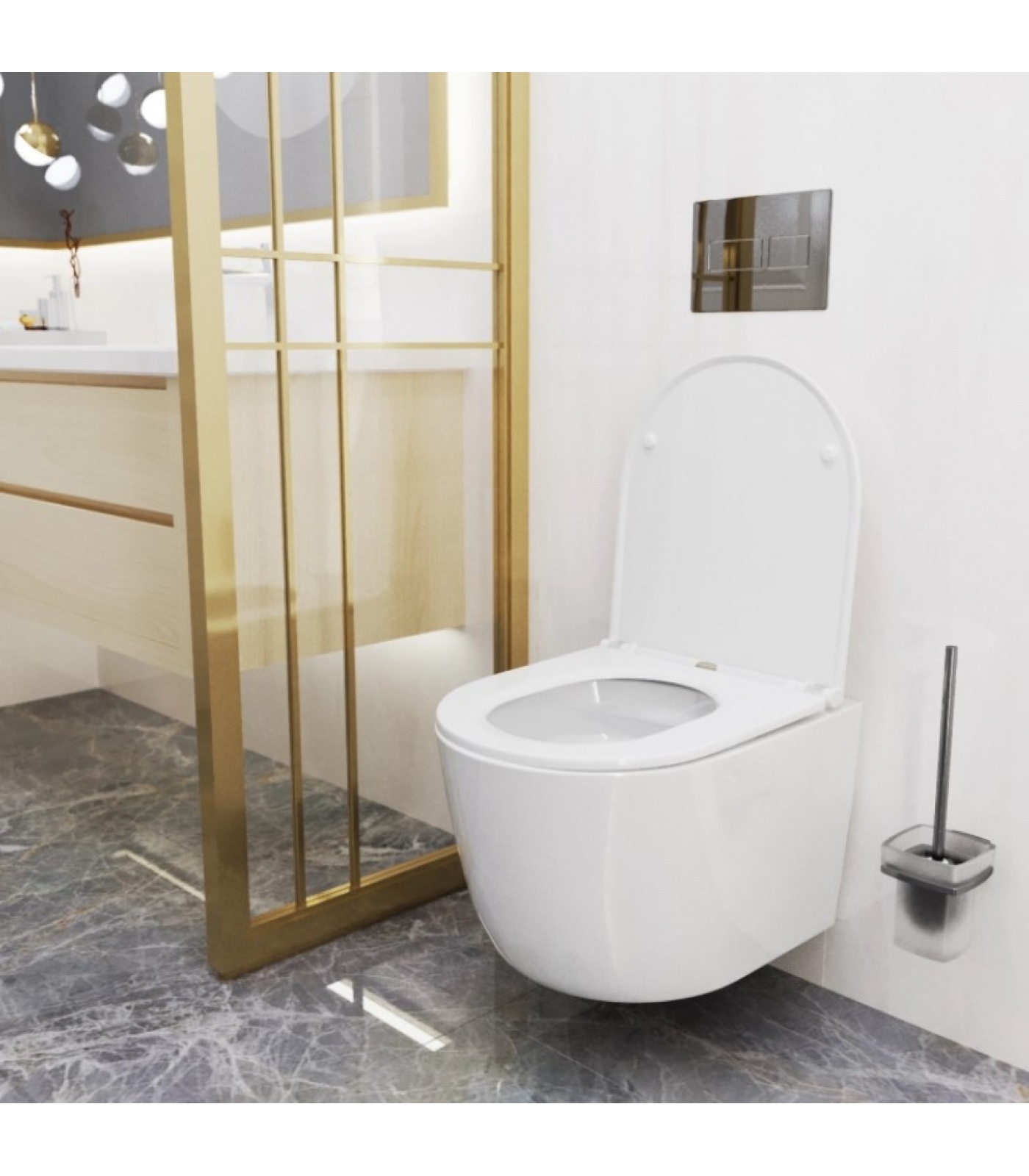 Унитаз подвесной безободковый WAVE LARA сиденье дюропласт, микролифт, белый глянец, XL