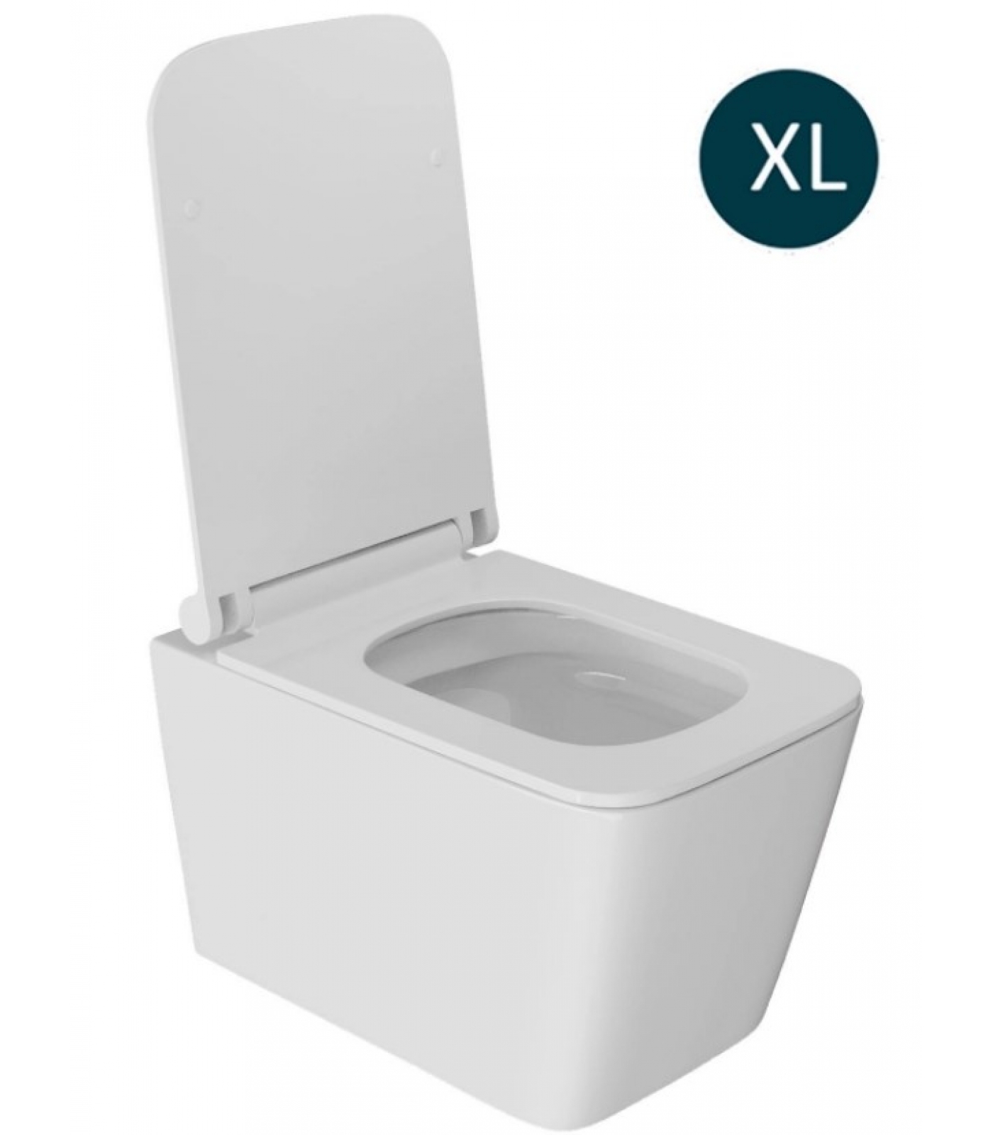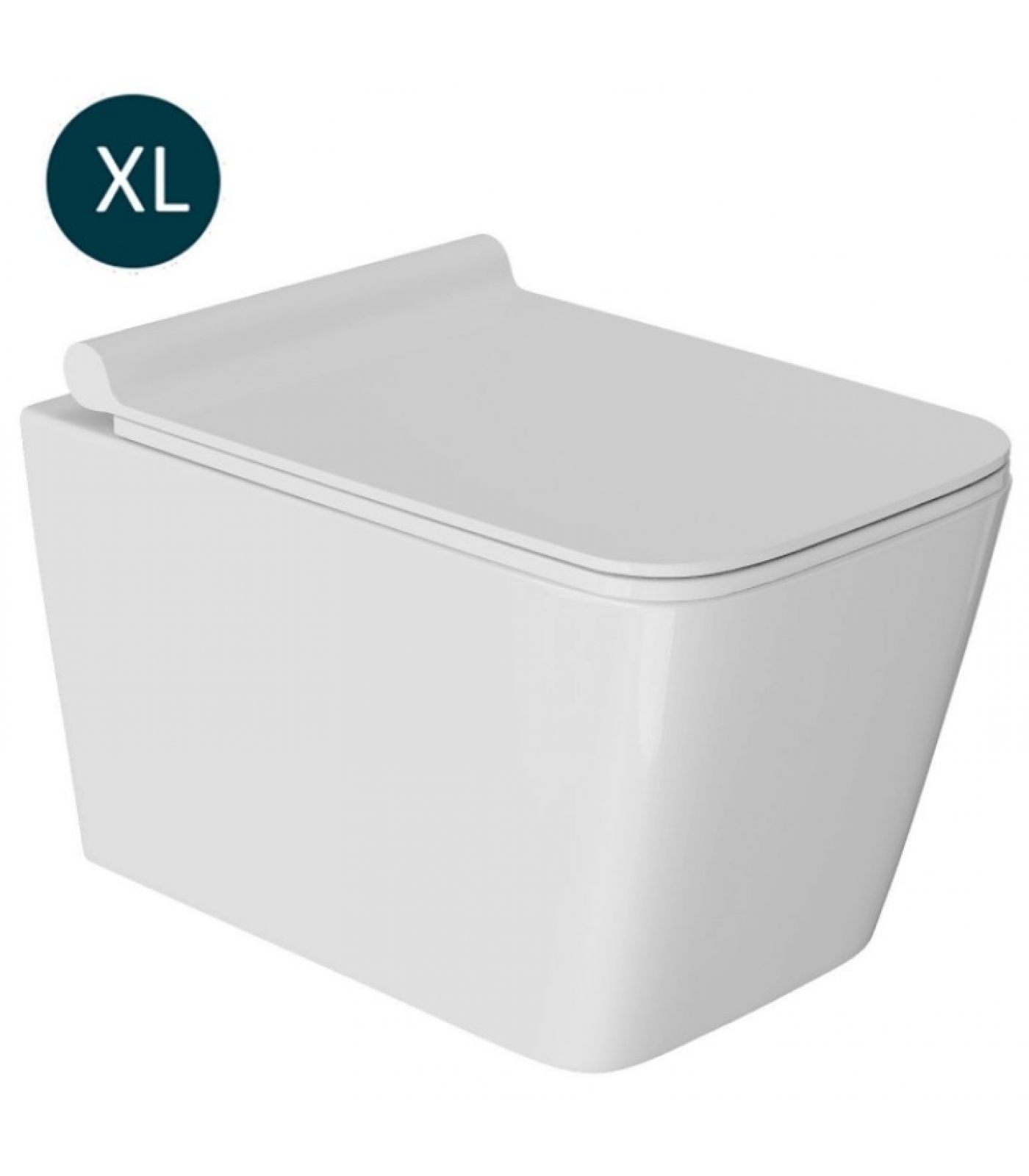 Унитаз подвесной безободковый WAVE LEON XL, сиденье дюропласт, микролифт, белый глянец