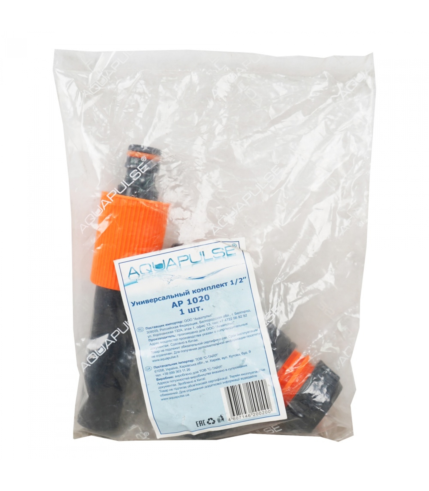 Универсальный комплект 1/2’’ AP 1020 упакован в полиэтилен без индивидуальной упаковки (в комплекте четыре единицы товара) и может продаваться по комплектно.