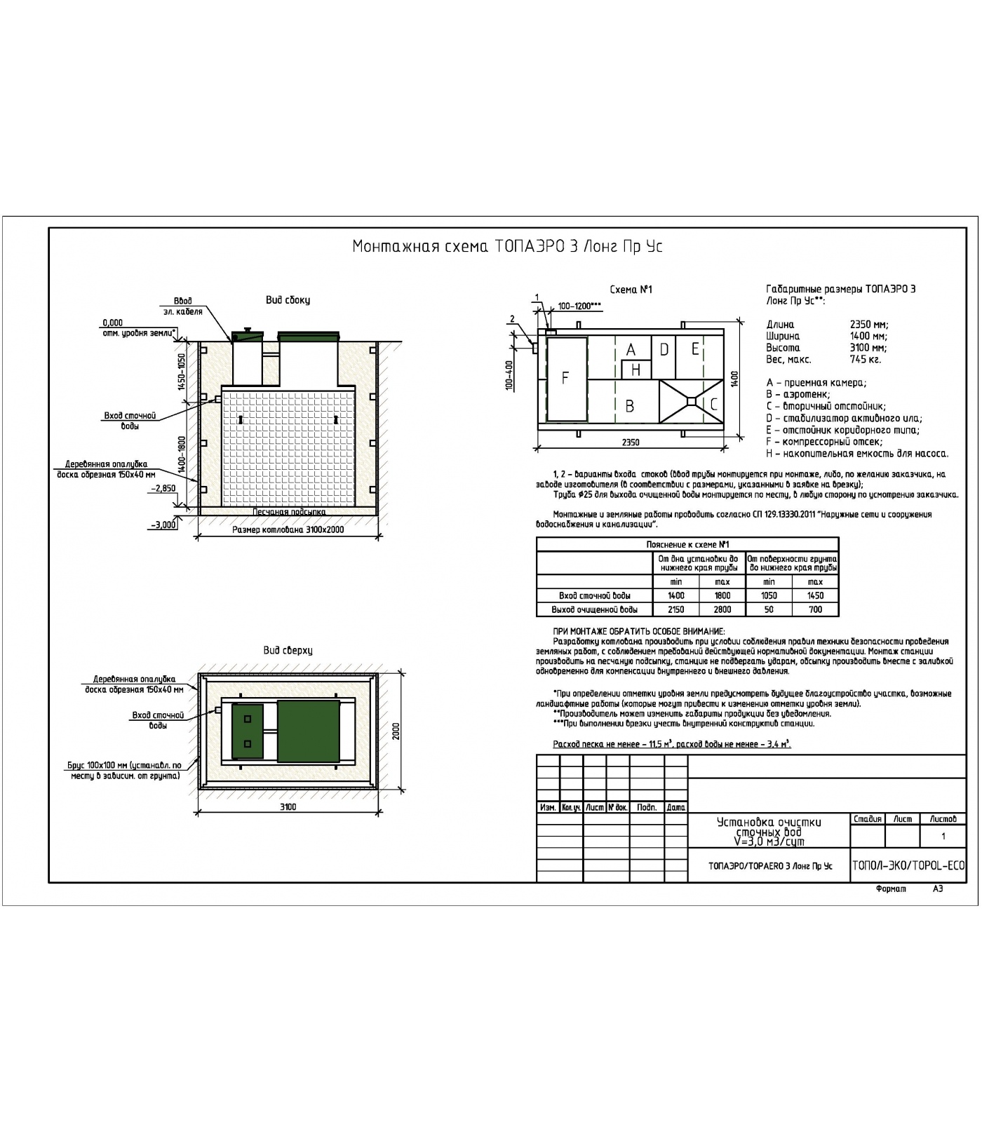 Установка очистки сточных вод ТОПАЭРО 3 Long Пр Ус