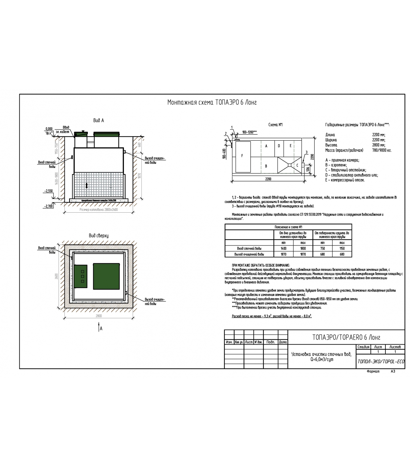 Установка очистки сточных вод ТОПАЭРО 6 Long