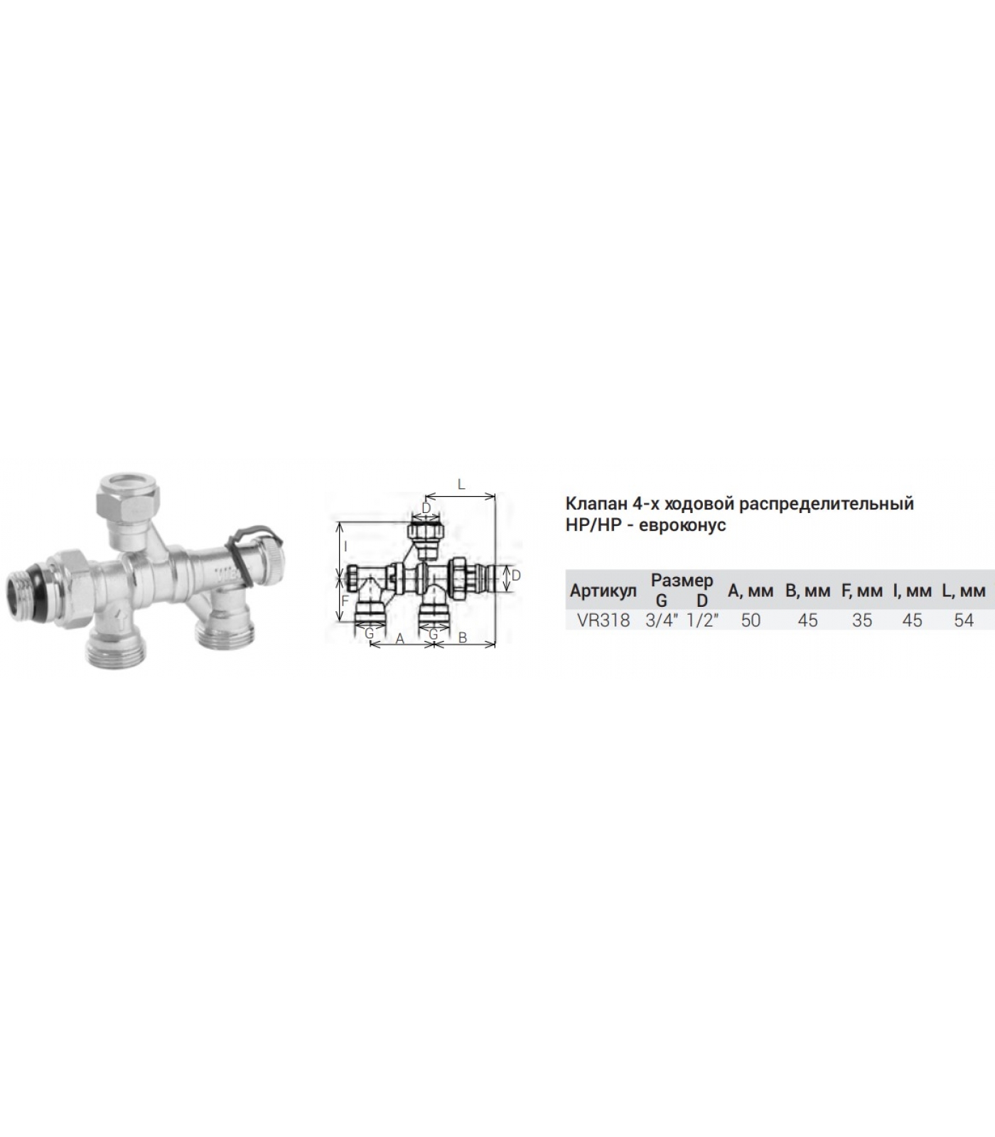 VR318- Клапан 4-х ходовой распределительный НР/НР - евроконус