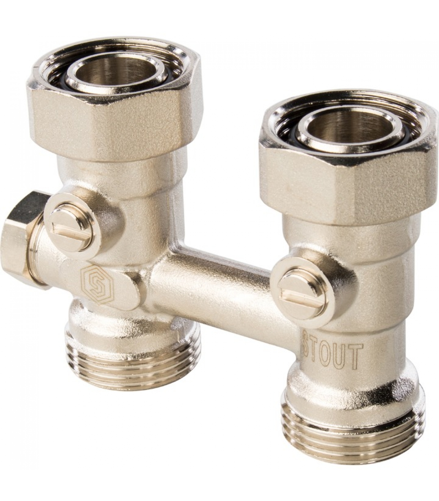 Узел радиаторный запорно-присоединительный (Н-образный) с регулируемым байпасом STOUT, тип SVH, предназначен для подключения радиаторов с нижним расположением присоединительных патрубков к разводящим трубопроводам однотрубной и двухтрубной системы водяного отопления, а также для отключения радиаторов от трубопроводной сети без опорожнения системы отопления.