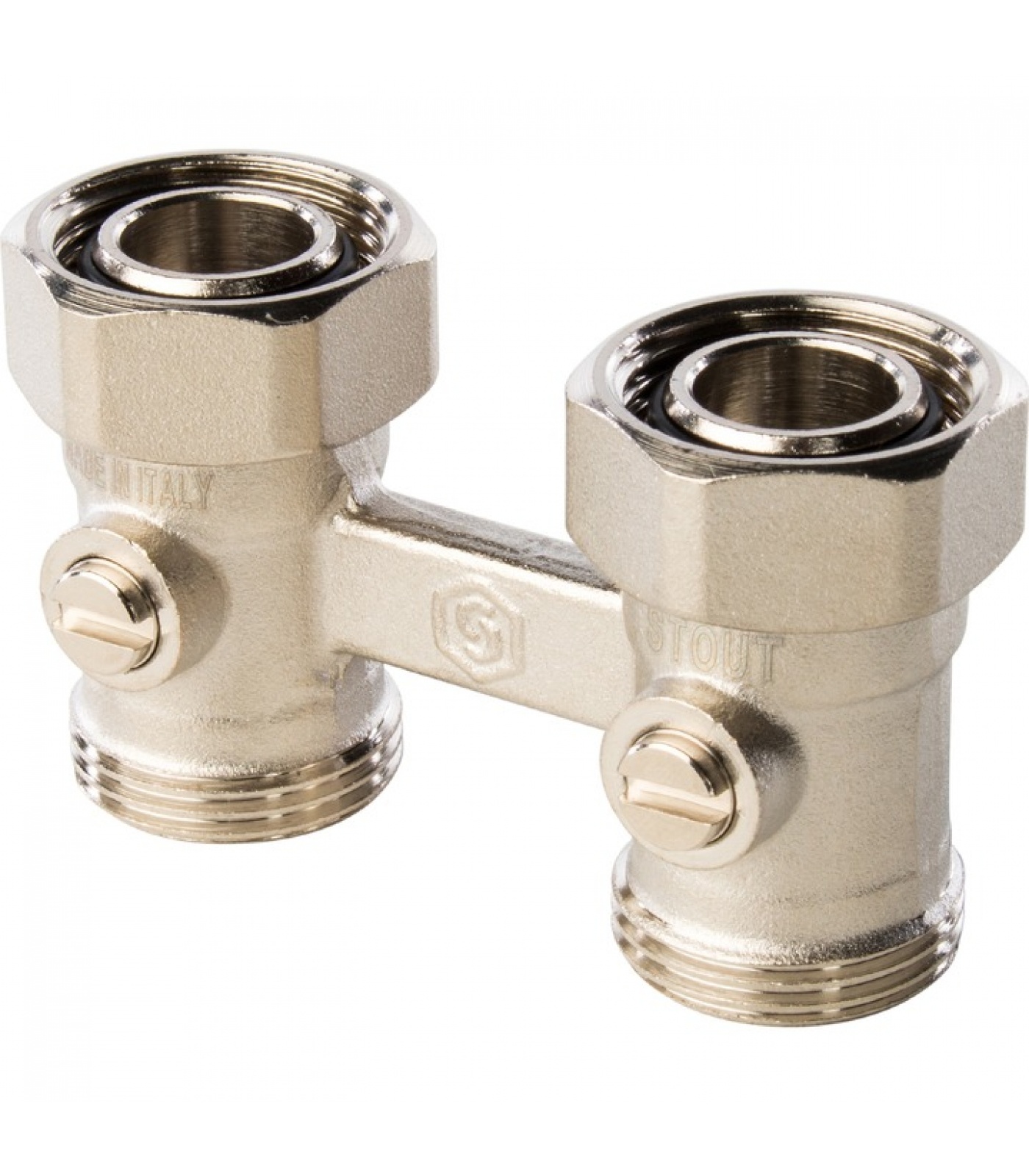 Узел радиаторный запорно-присоединительный (Н-образный) STOUT для двухтрубной системы отопления, тип SVH, предназначен для подключения радиаторов с «донными» присоединительными патрубками к разводящим трубопроводам горизонтальной двухтрубной системы водяного отопления, а также для отключения радиаторов от трубопроводной сети без опорожнения системы отопления.