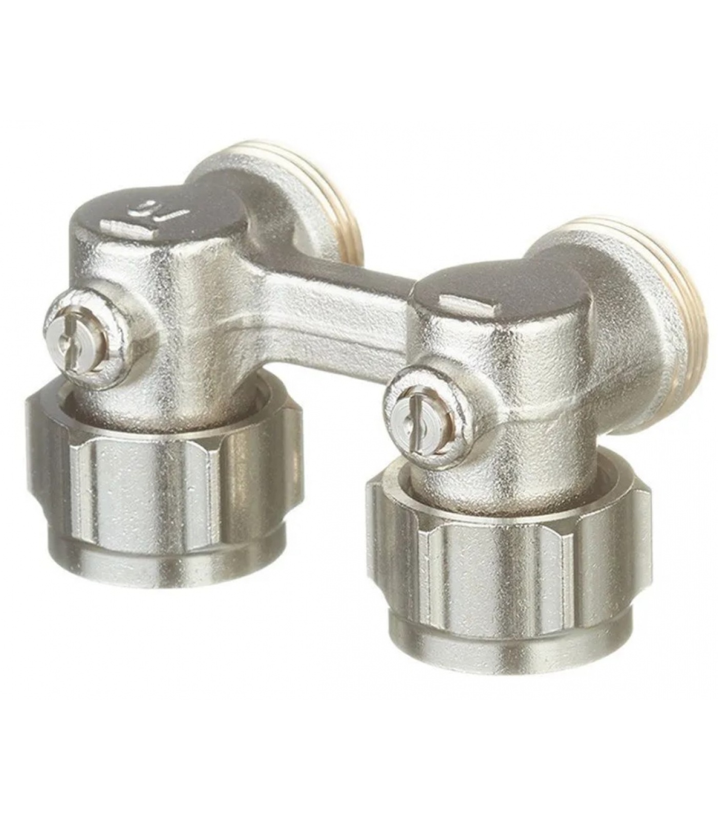 Узел нижнего подключения радиатора Oventrop Multiflex F угловой 3/4" для двухтрубной системы отопления, для подключения радиаторов с нижними присоединительными патрубками при межосевом расстоянии 50 мм.