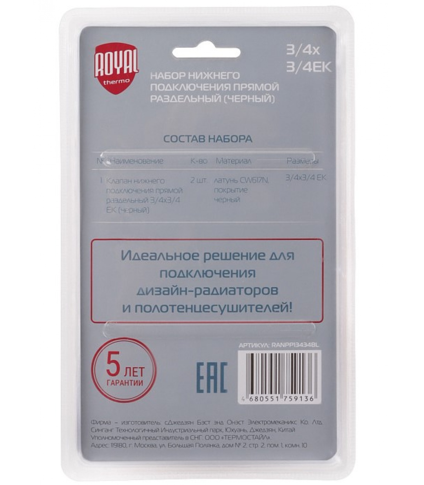 Комплект поставки 2 клапана 3/4х3/4ЕК в упаковке блистера