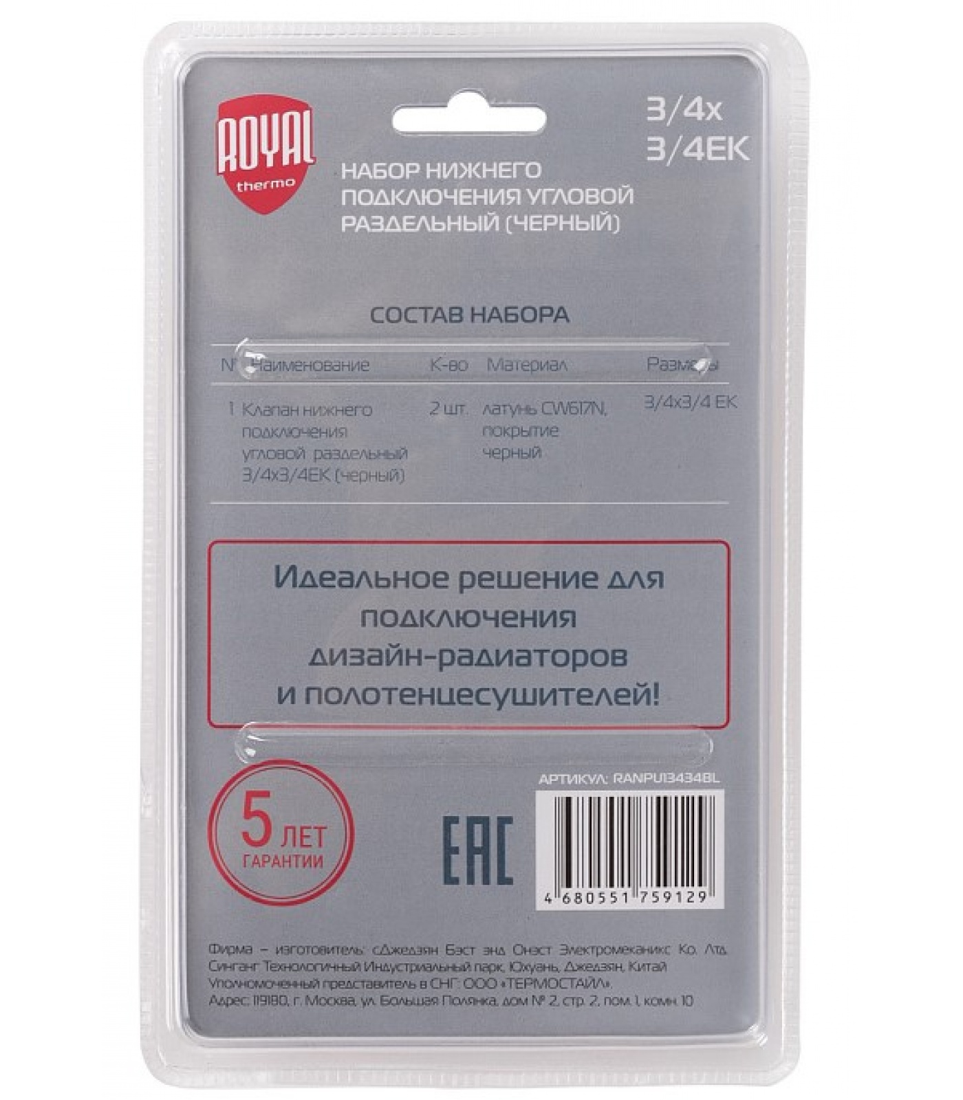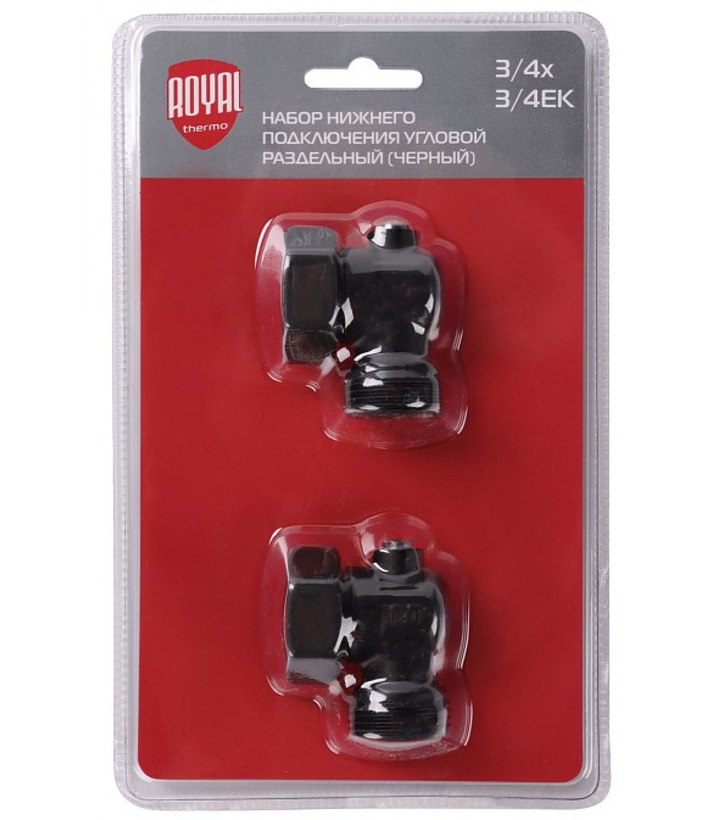 Узел нижнего подключения Royal Thermo угловой раздельный 3/4х3/4ЕК черный