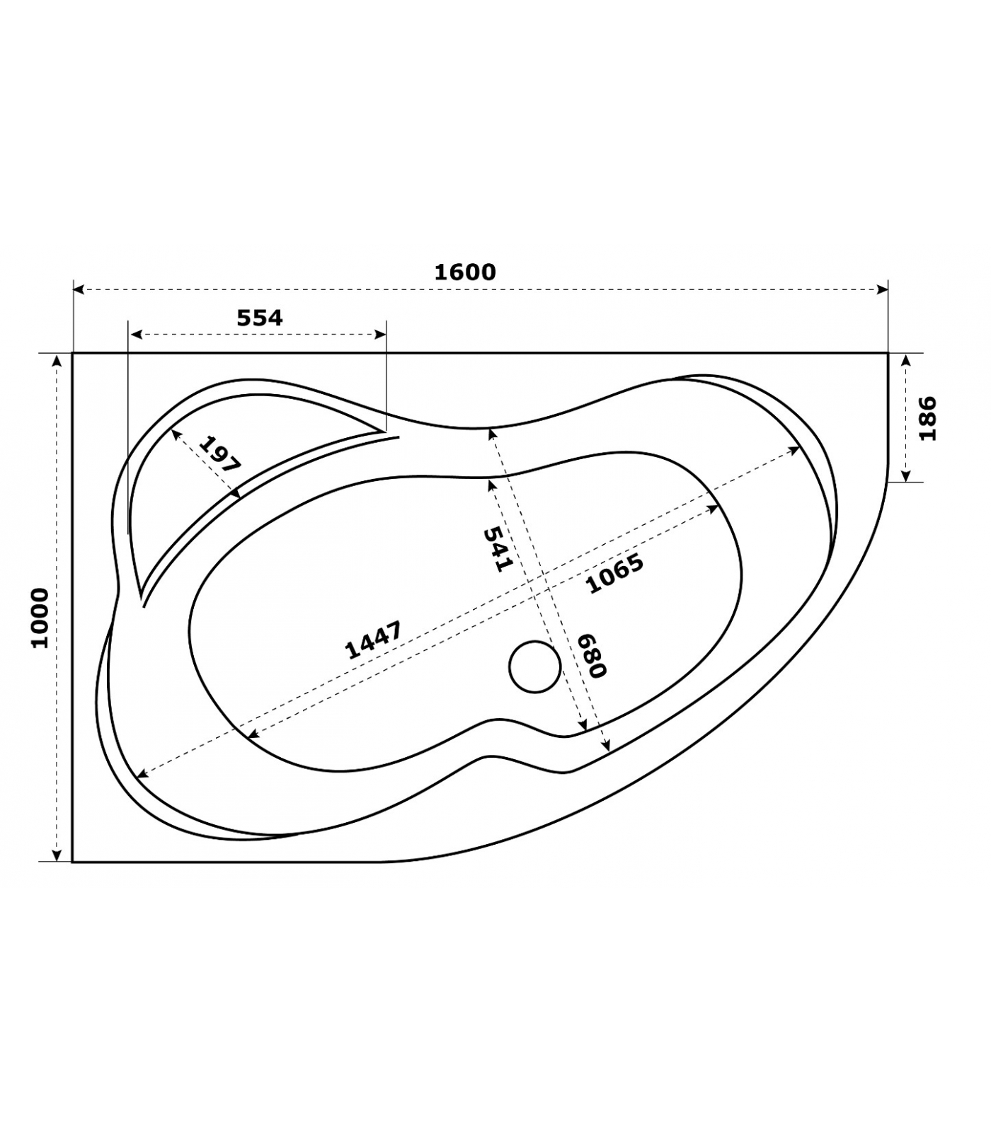 Ванна 160х100 акриловая Azario Микона левая