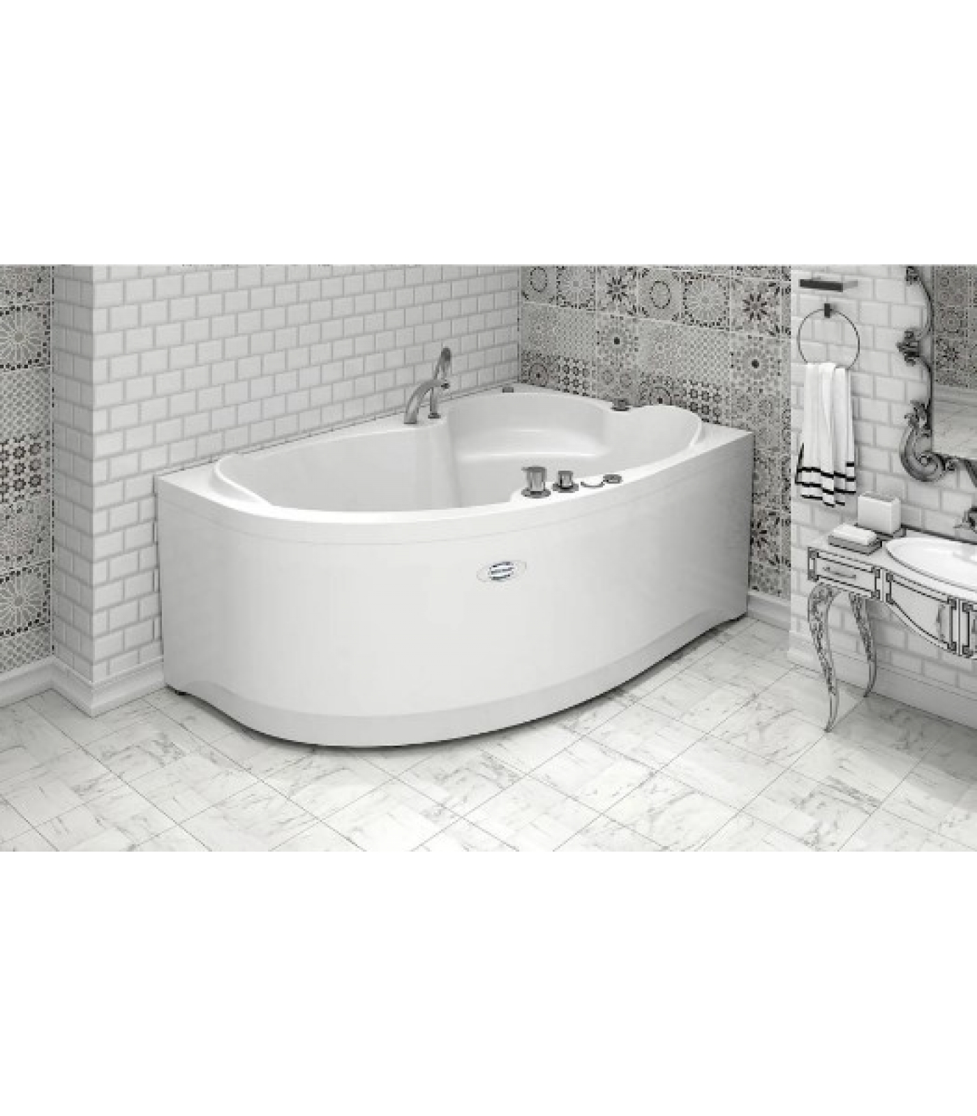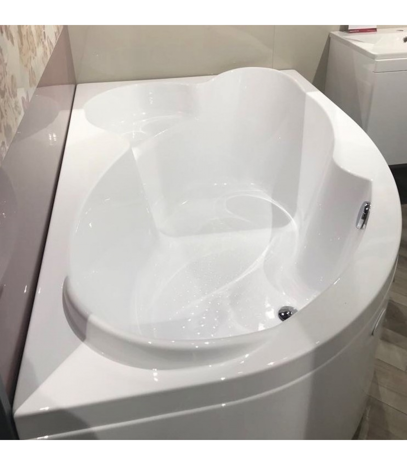 Акриловая ванна «Ирма» - это удобная современная модель угловой ванны. Она имеет асимметричную форму, которая эффективно распределяет пространство ванной комнаты. Размещение в ванной возможно с любой стороны, так как слив находится по центру, также имеется две удобные спинки, которые позволяют долго и комфортно принимать ванну лежа. Есть удобное сиденье. Ванна соединила в себе практичность, красоту и комфорт - это идеальный вариант для людей, живущим в современном мире.