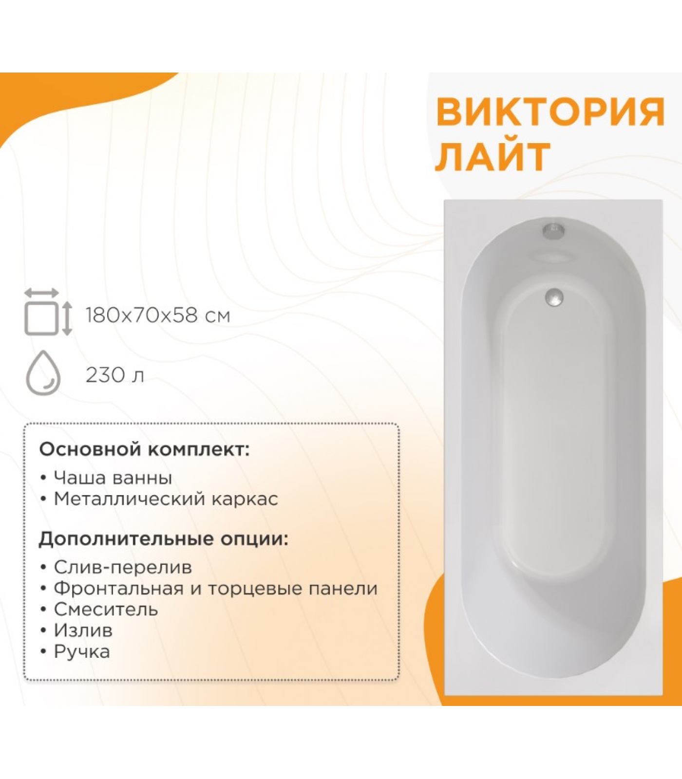 Radomir Виктория Лайт 180х70 – идеальный баланс между стилем и функциональностью. Выполненная из качественного акрила, она отличается высокой прочностью и устойчивостью к износу.