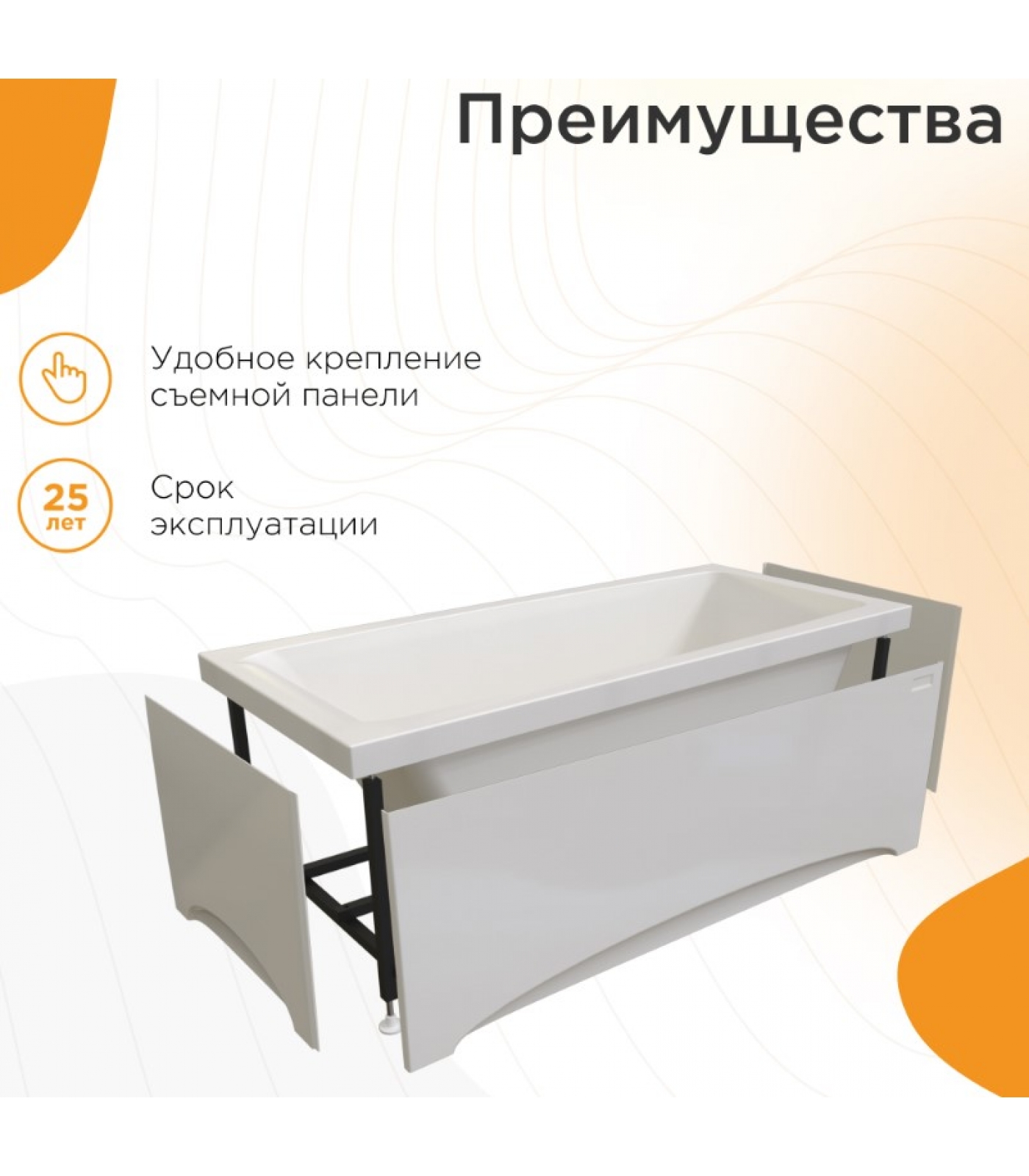 Элегантный дизайн ванны гармонично впишется в любой интерьер, а просторное внутреннее пространство обеспечит максимальный комфорт при купании. Легко моющаяся поверхность делает уход за ней простым и удобным.