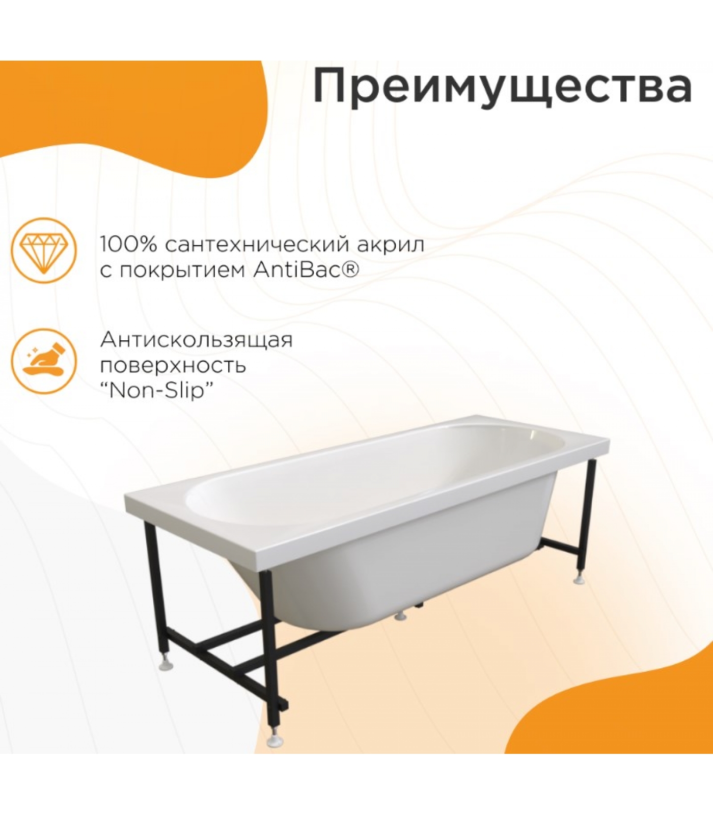 Акриловая ванна Radomir Виктория лайт 180x70 см изготовлена из 100% листа акрила толщиной 4 мм.