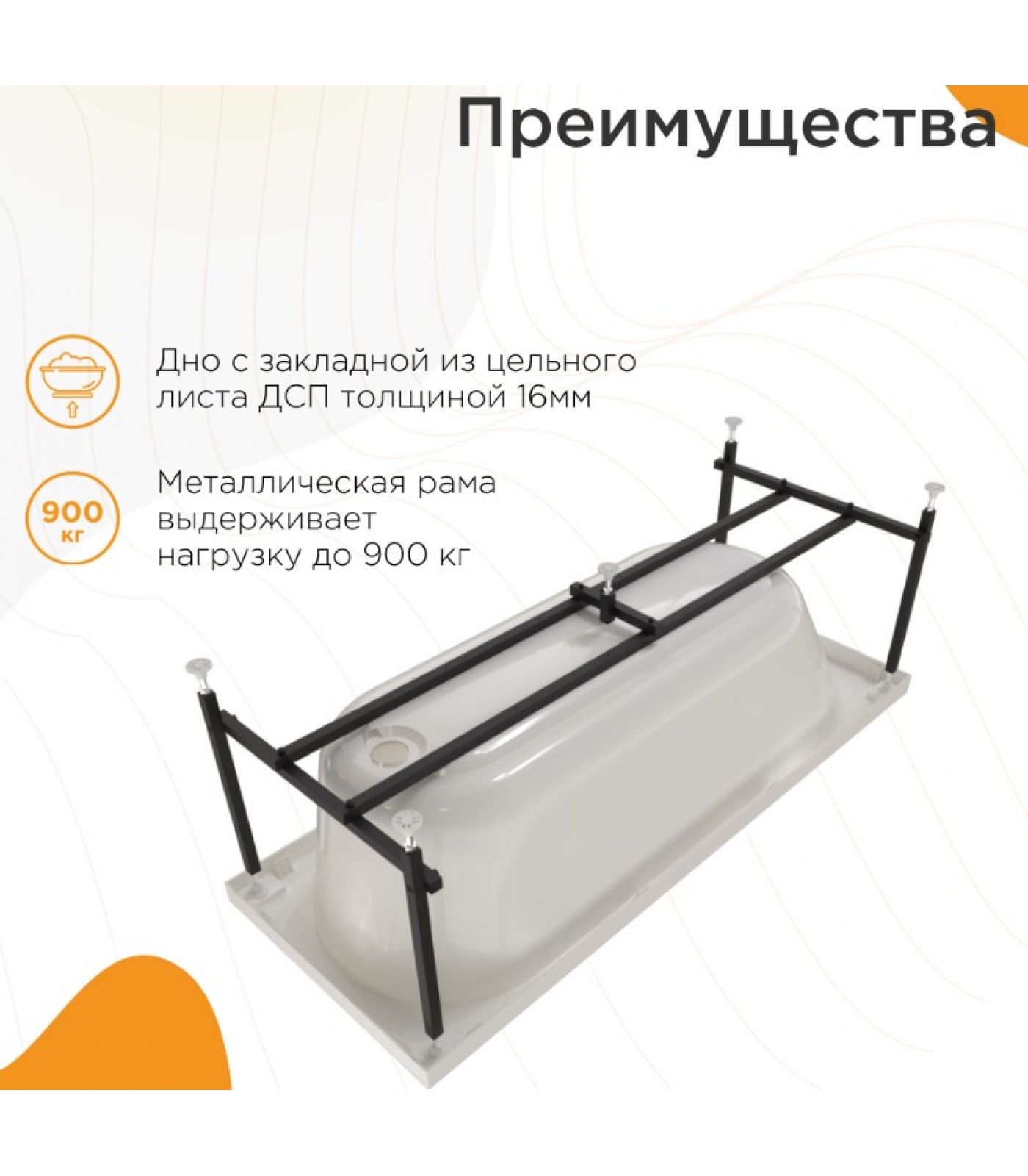 Ванна 180х70 акриловая Radomir Виктория лайт, каркас разборный