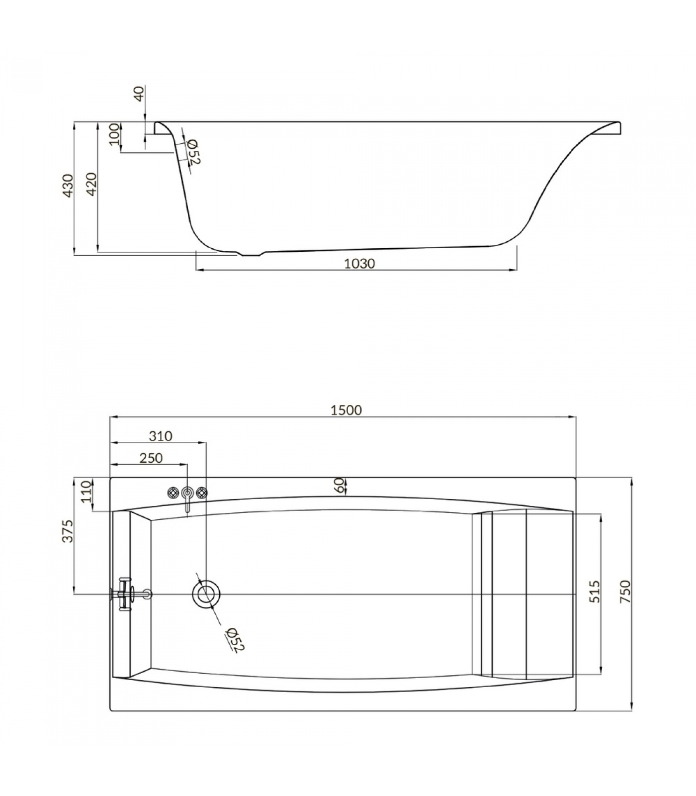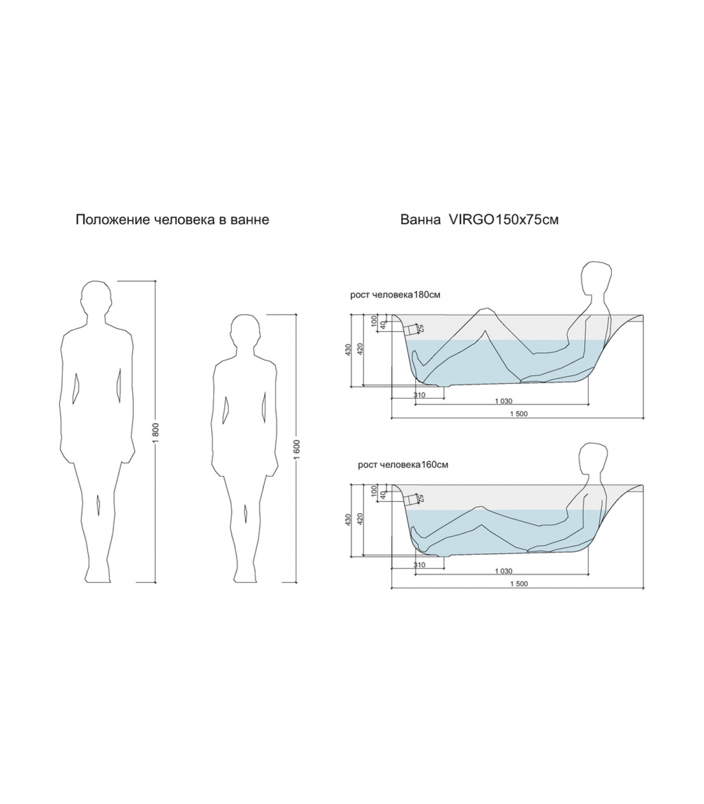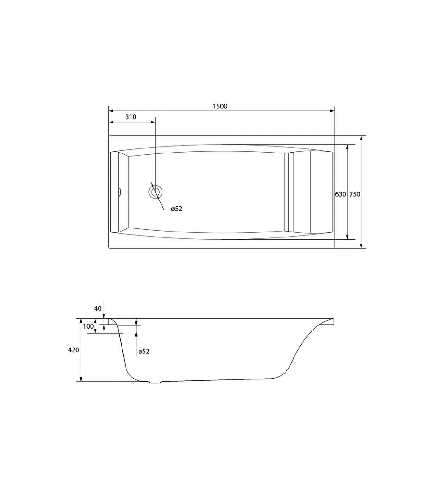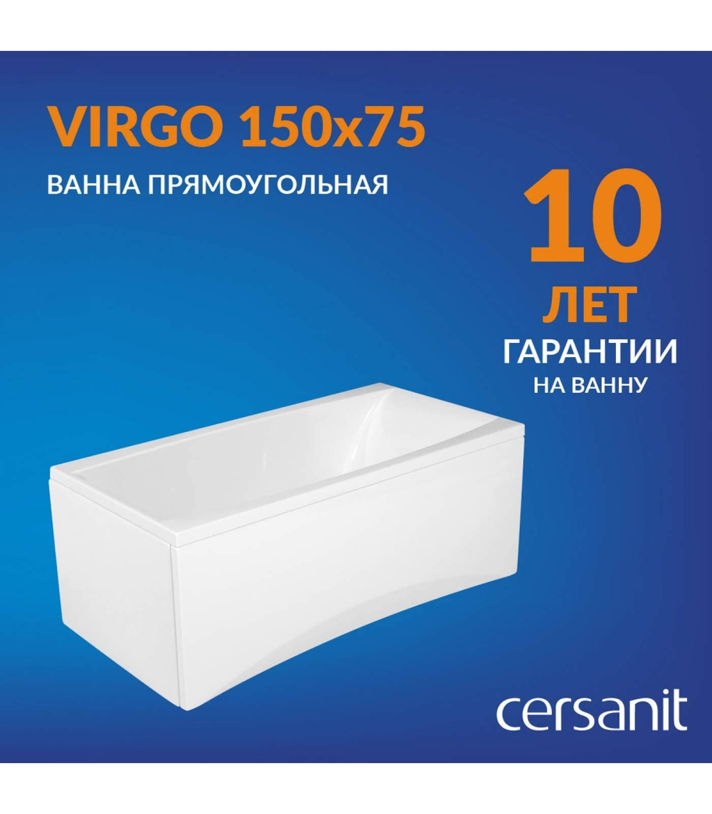 Ванна прямоугольная VIRGO 150x75, белый (P-WP-VIRGO*150NL)