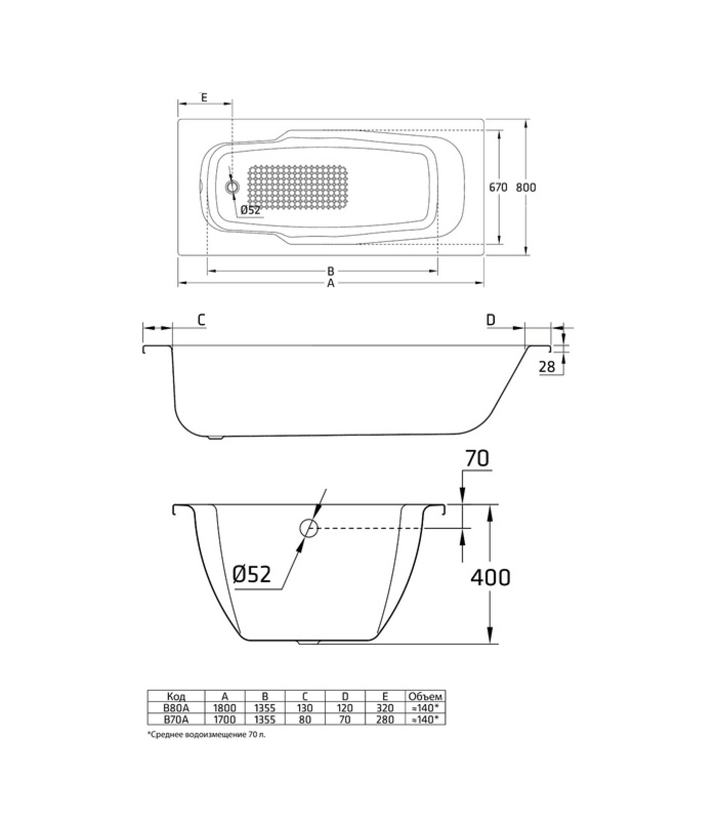 Ванна 180х80 стальная BLB Atlantica 3,5 мм.