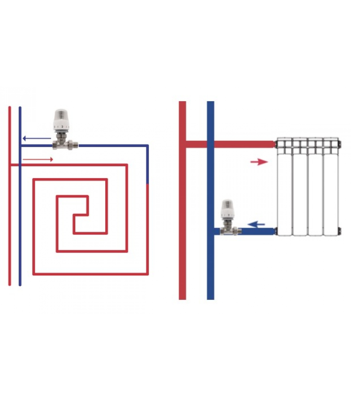 Термостатический вентиль предназначен для регулирования температуры теплоносителя в отдельной петле системы встроенного водяного отопления (теплого пола), а так же ограничения температуры на обратной циркуляции радиатора.