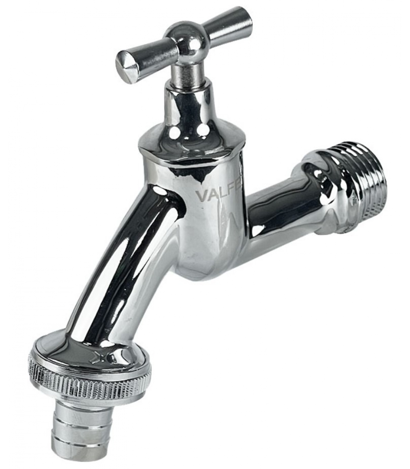 Вентиль водоразборный 3/4" Valfex латунный со штуцером, ручка-бабочка, декор, хром