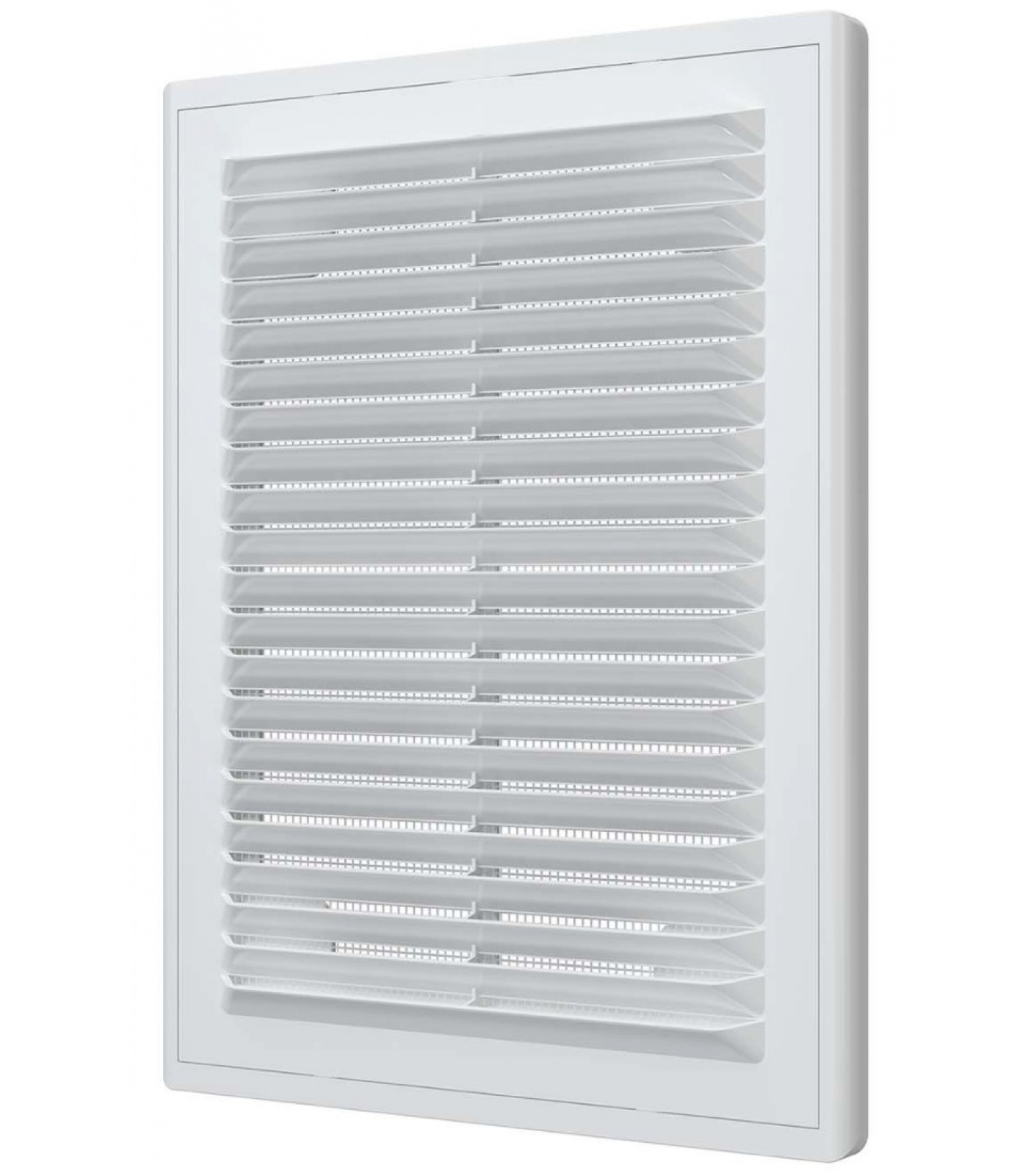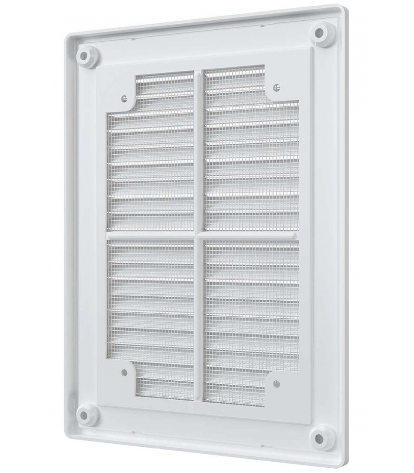 Решетка оснащена наклонными жалюзи, которые помогают скрыть вентиляционный выход, а также антимоскитной сеткой для защиты от насекомых.