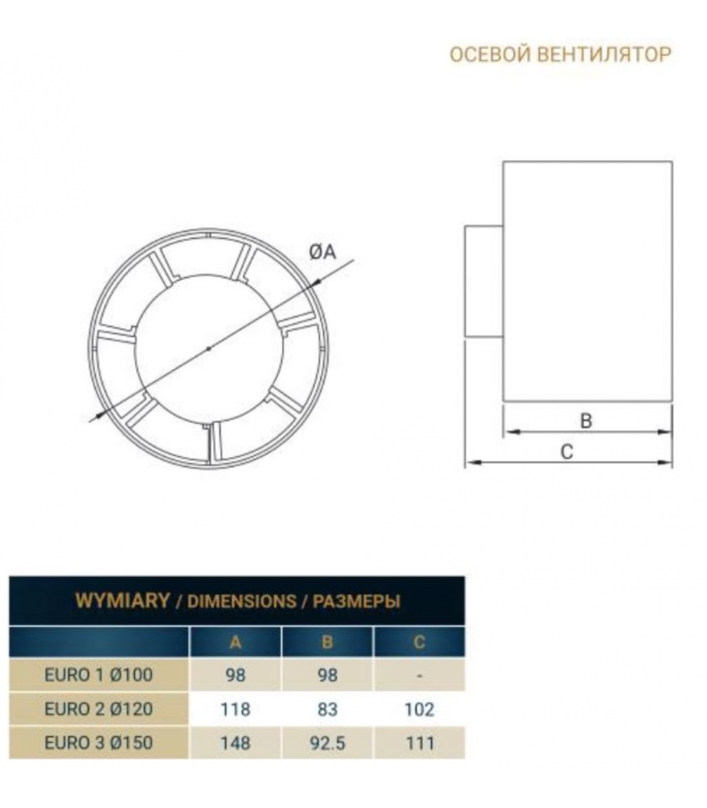 Вентилятор Ø100мм Dospel EURO 1 канальный, стандартный, m³/h 100