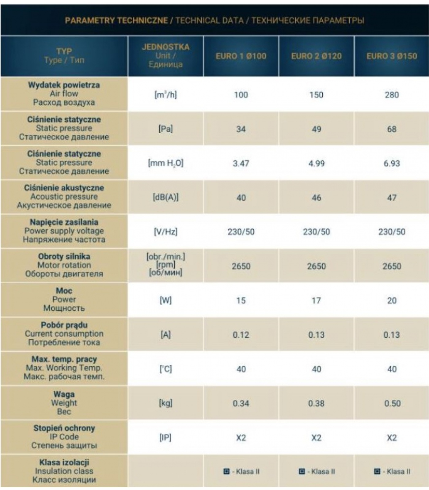 007-0051 EURO 1 Ø100 Вентилятор канальный Ø100 Стандартный, m³/h 100