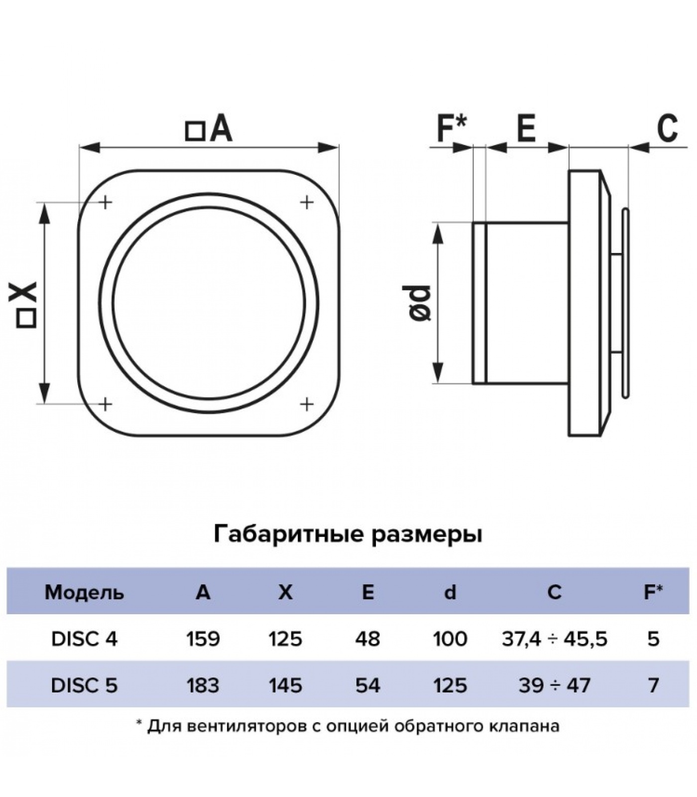 Вентилятор накладной DISC D125 обратный клапан ERA